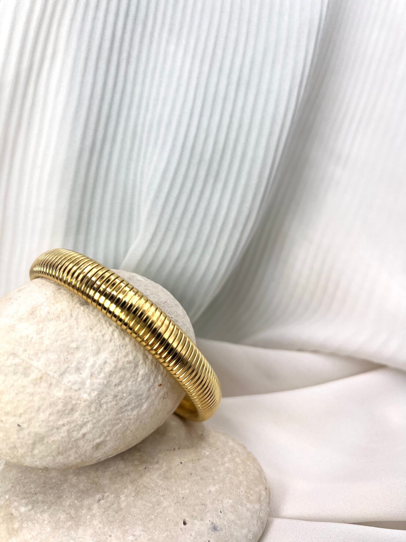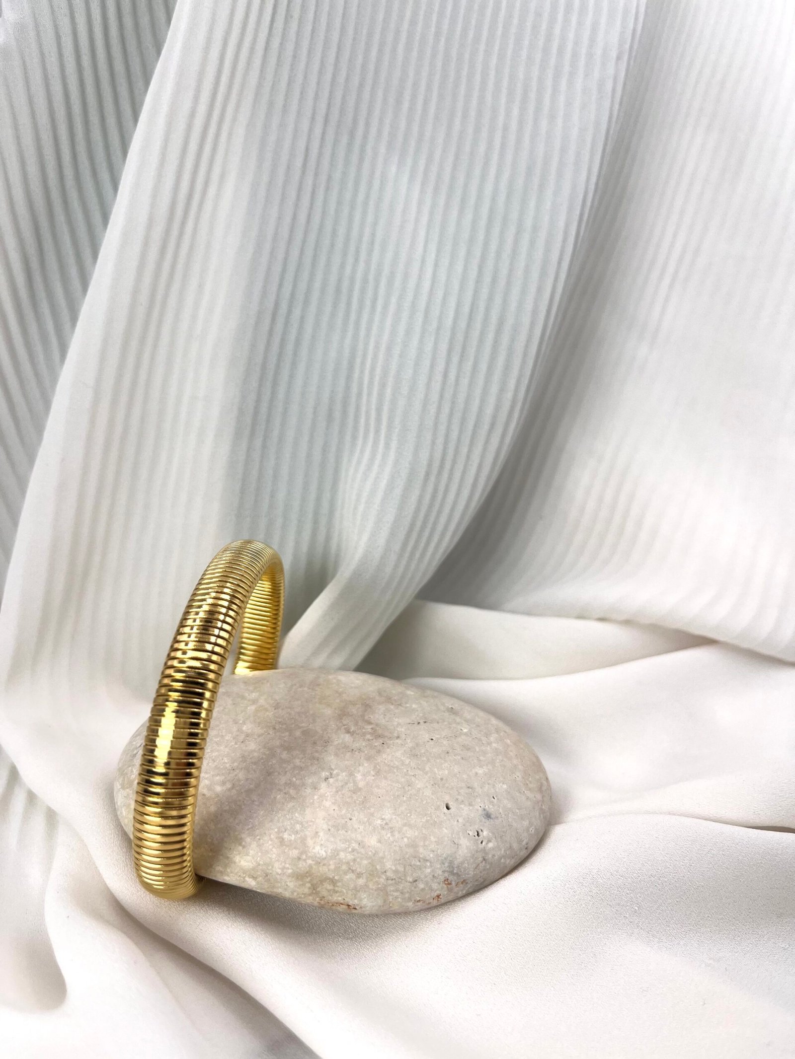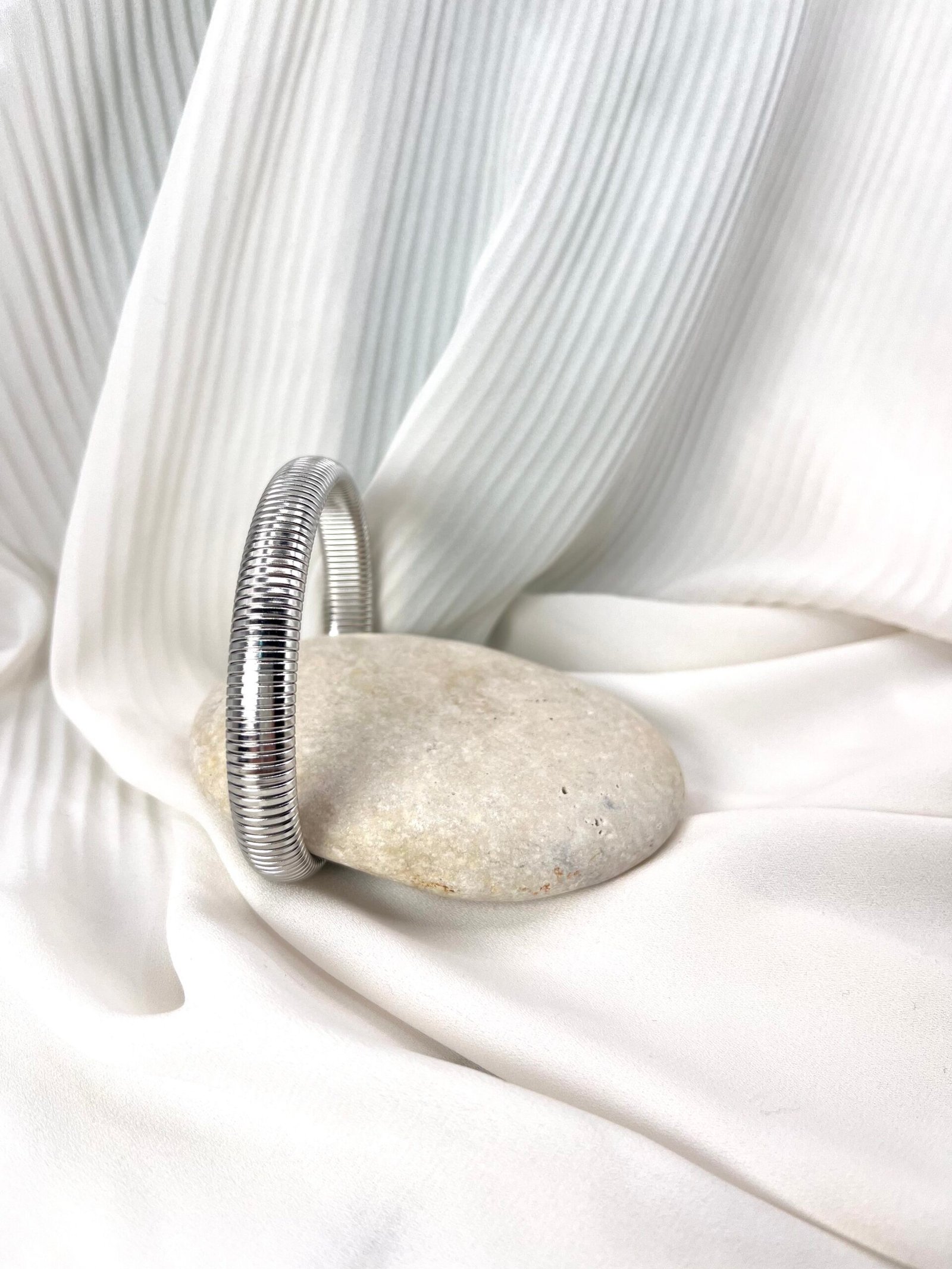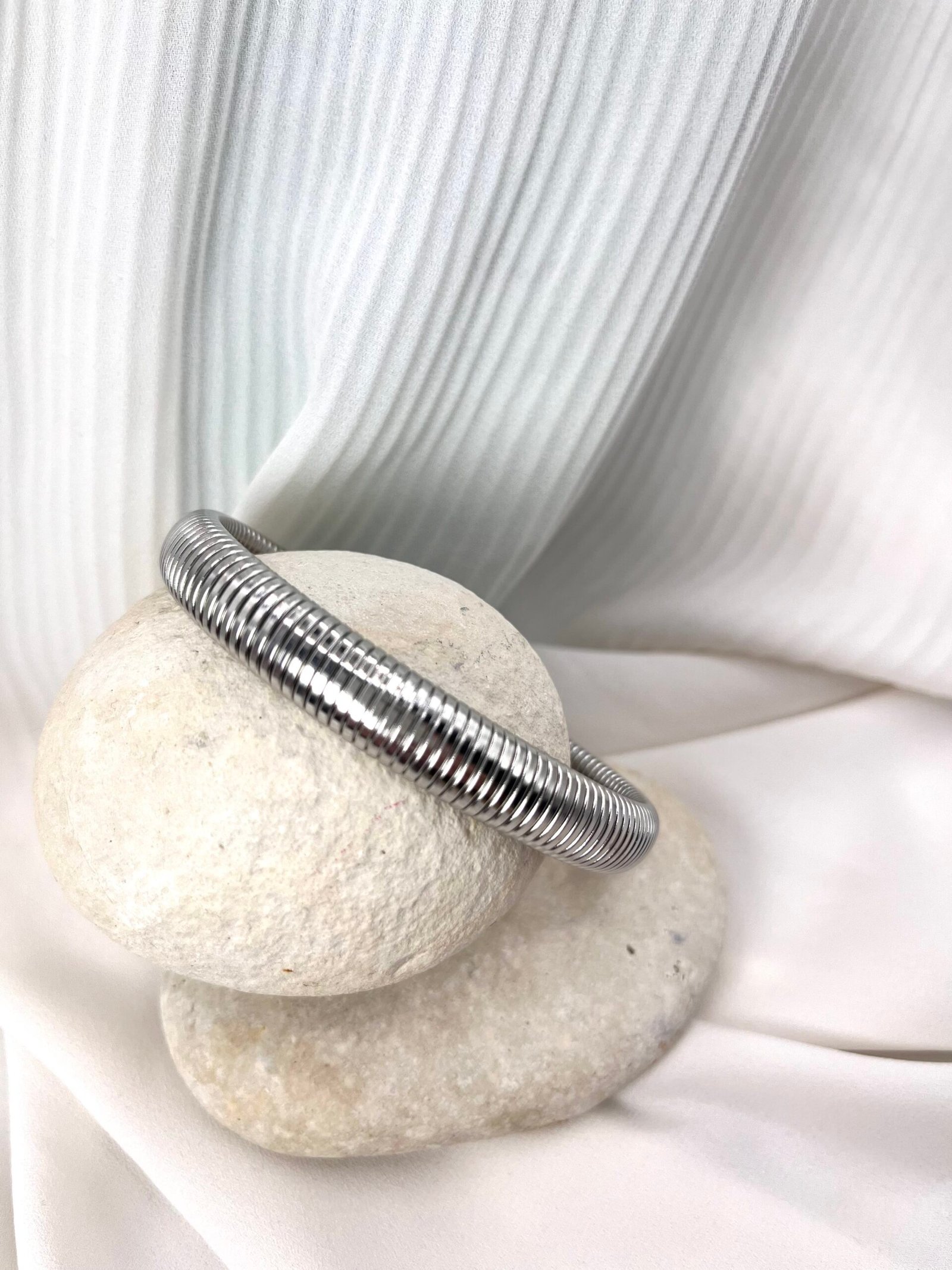 Ατσαλίνη χειροπέδα με όψη λάστιχο και εσωτερική ελαστικότητα.