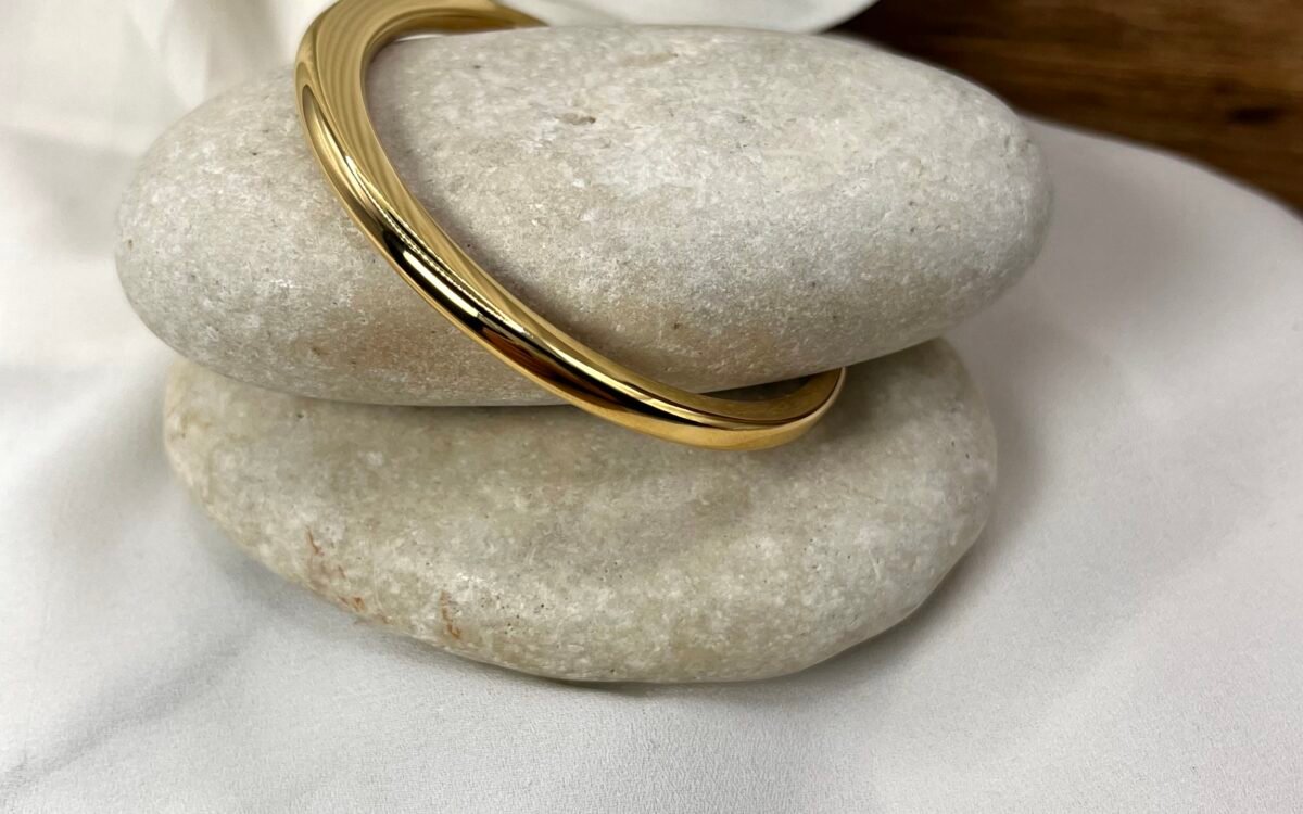 Λεπτή minimal ατσάλινη χειροπέδα, σε δύο αποχρώσεις, με πλατύ σε ύψος σχέδιο.