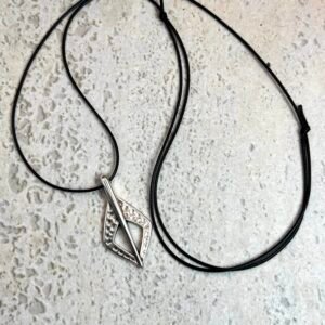 Βραχιόλι με χάντρες αιματίτη (0,4 cm) με κεντρικό στοιχείο συνδεδεμένους κρίκους από ατσάλι. Το κλείσιμό του είναι με τεχνική μακρεμέ, με δυνατότητα να μακραίνει και να κονταίνει.