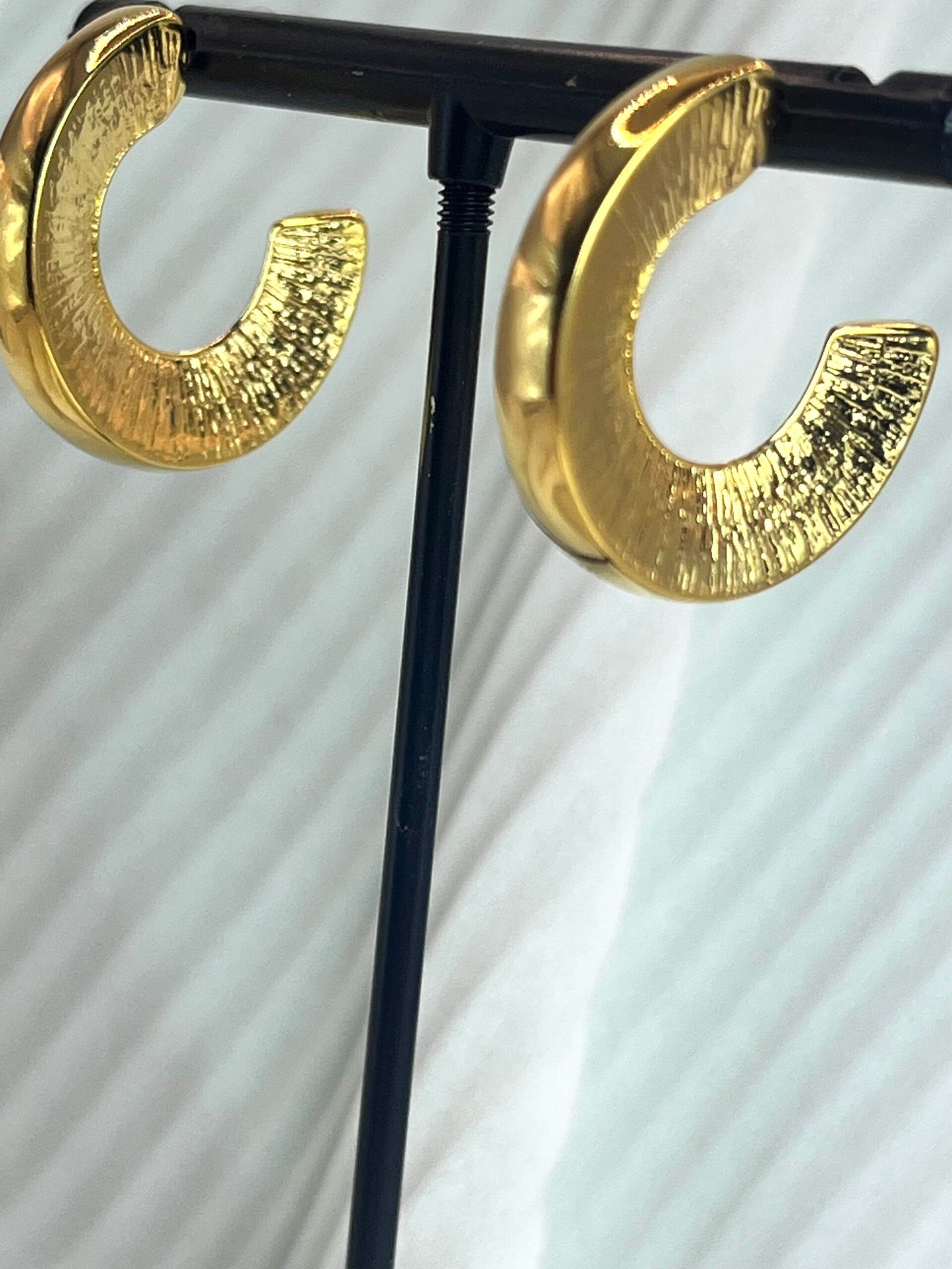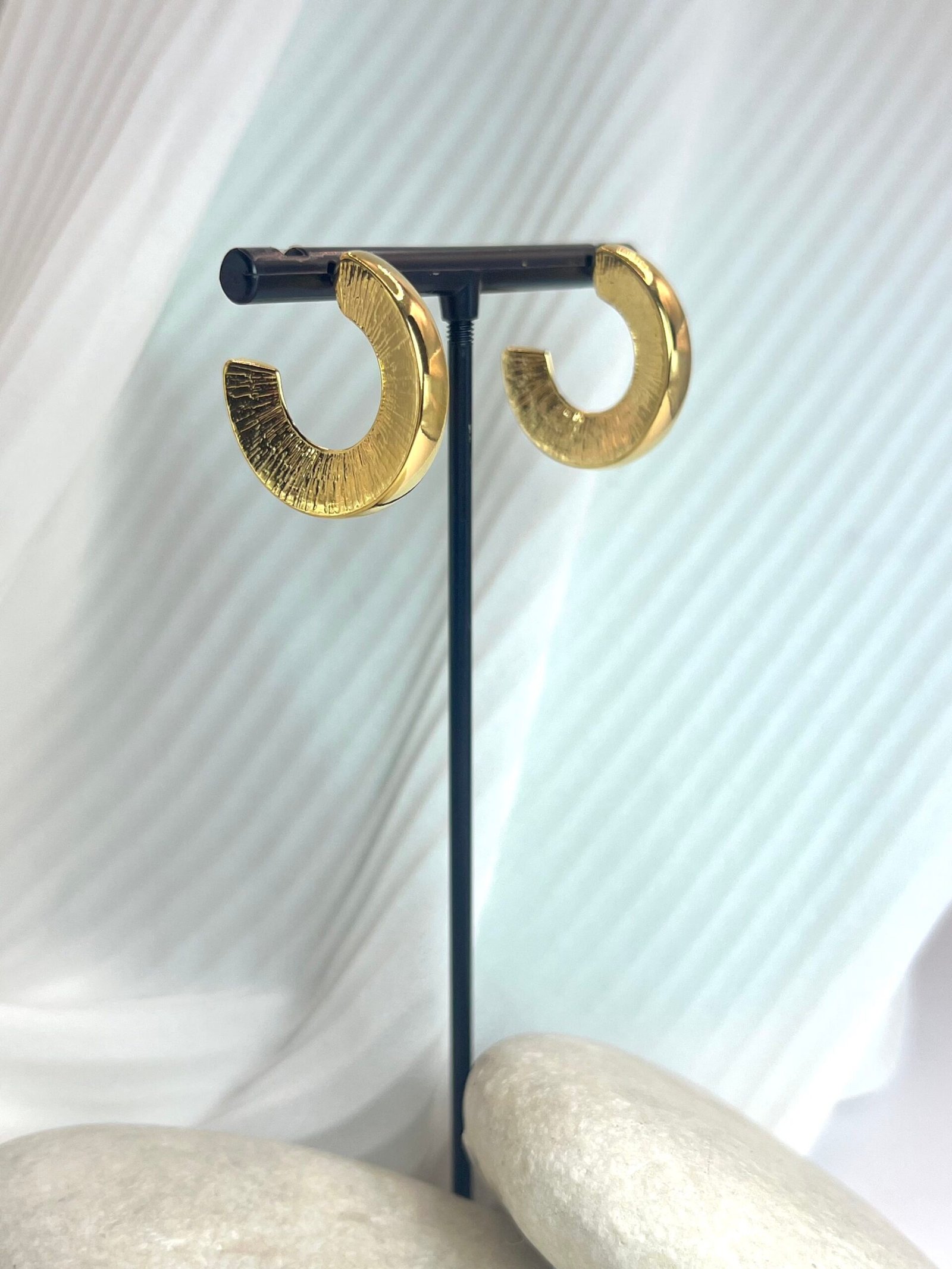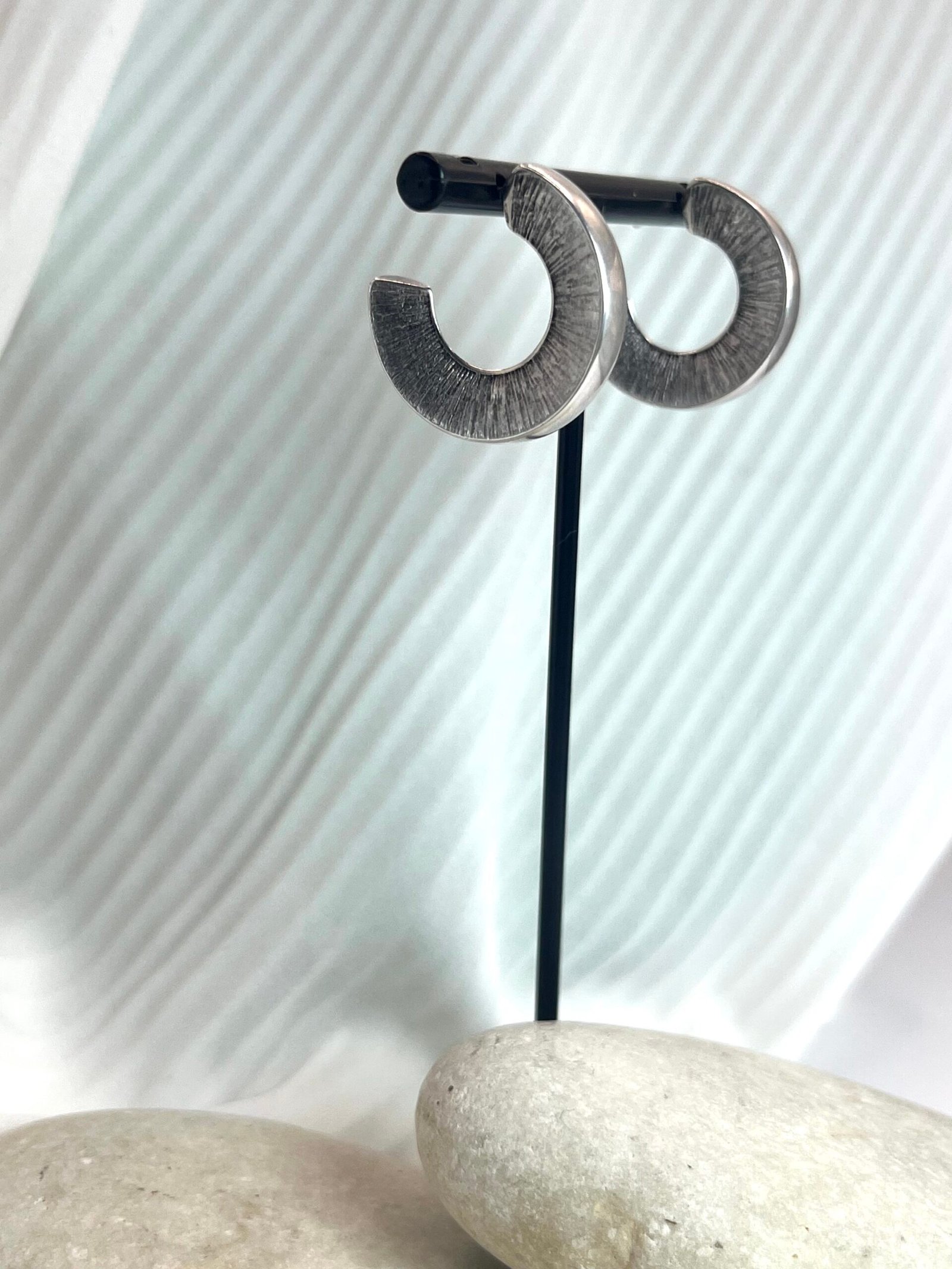 Καρφωτό στρογγυλό σκουλαρίκι με χαρακτηριστική υφή. Επάργυρο ή επίχρυσο, σφυρίλατο με καρφί τιτανίου.