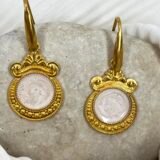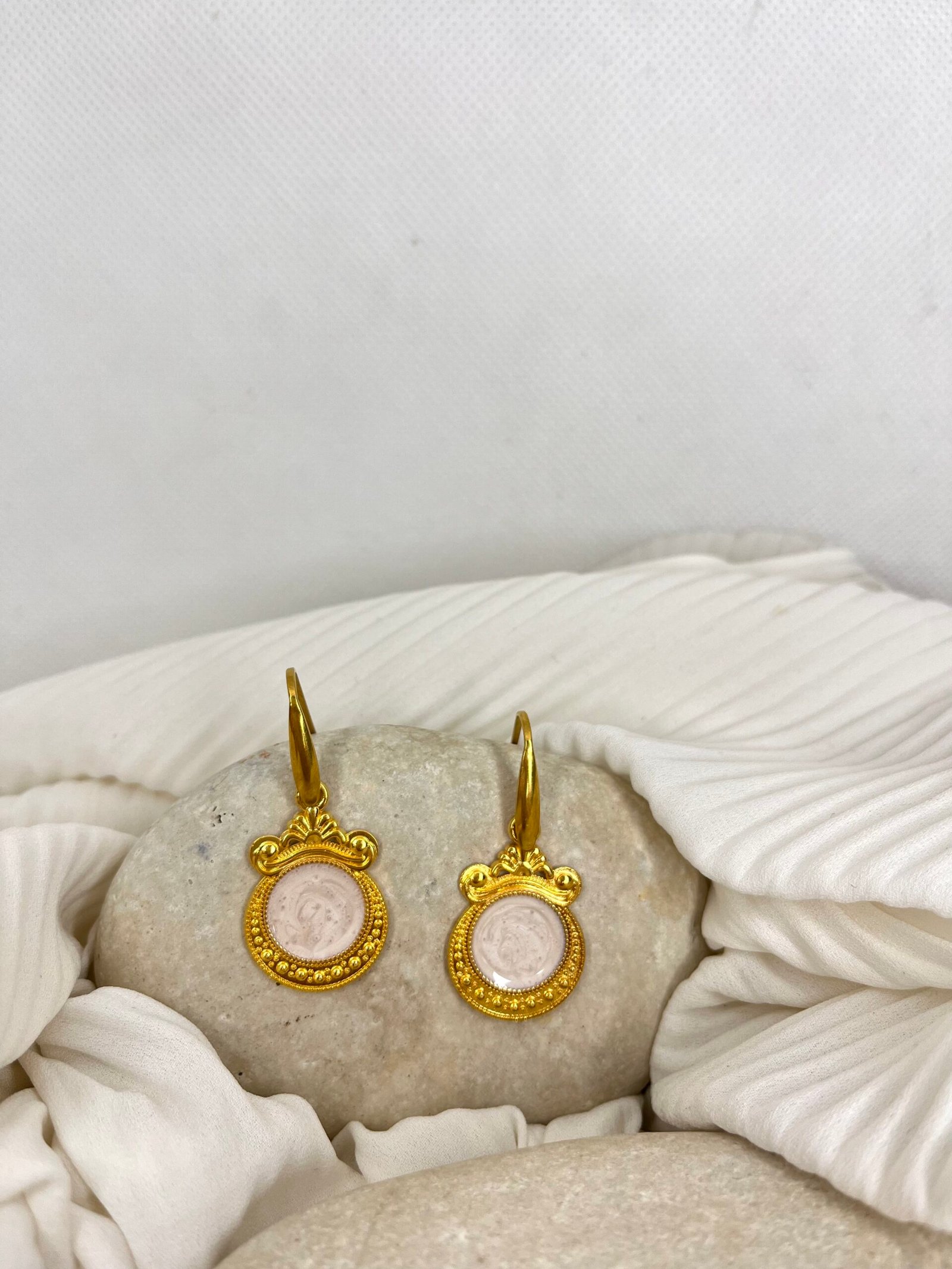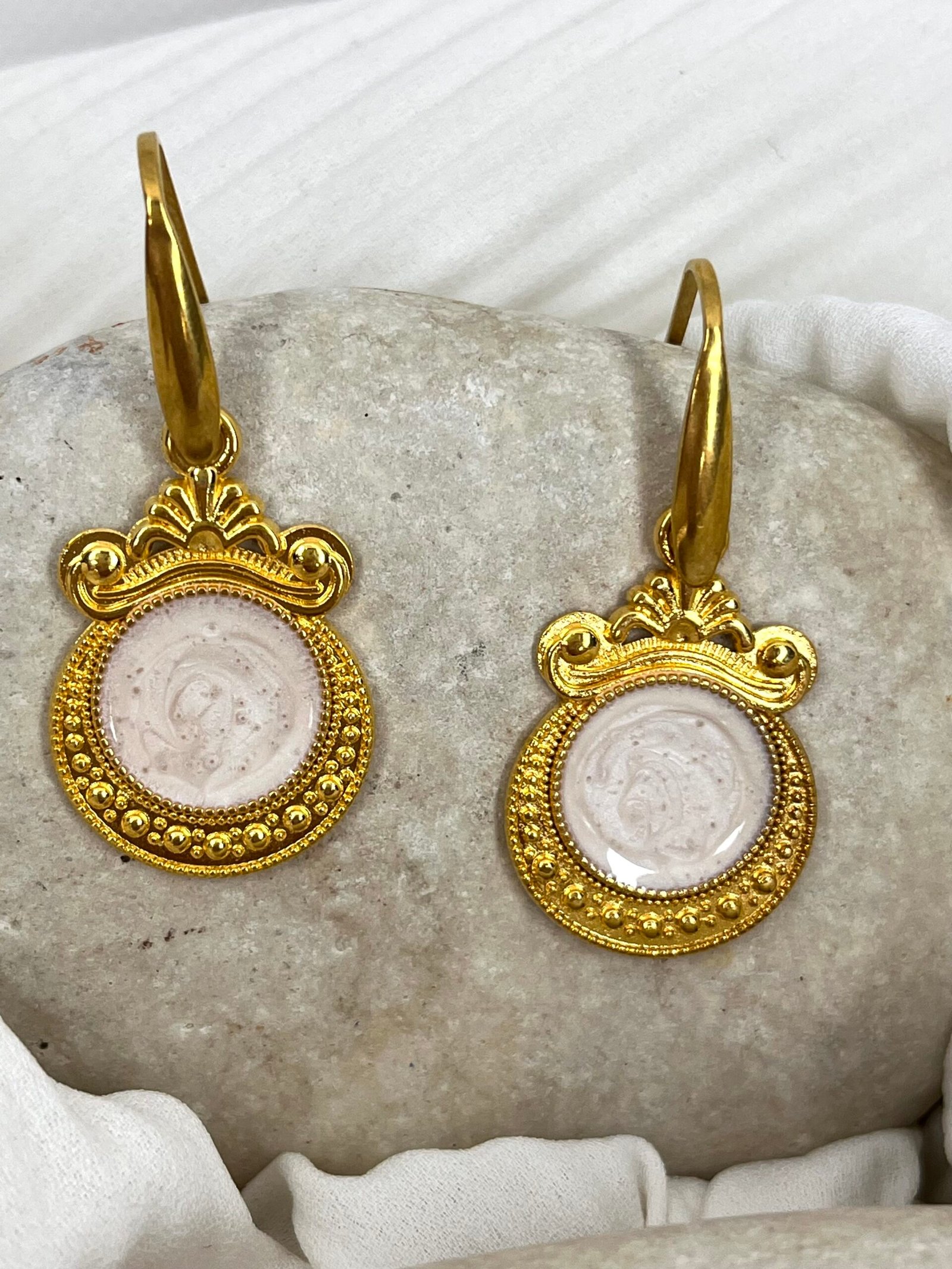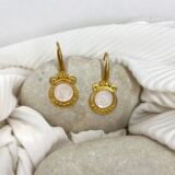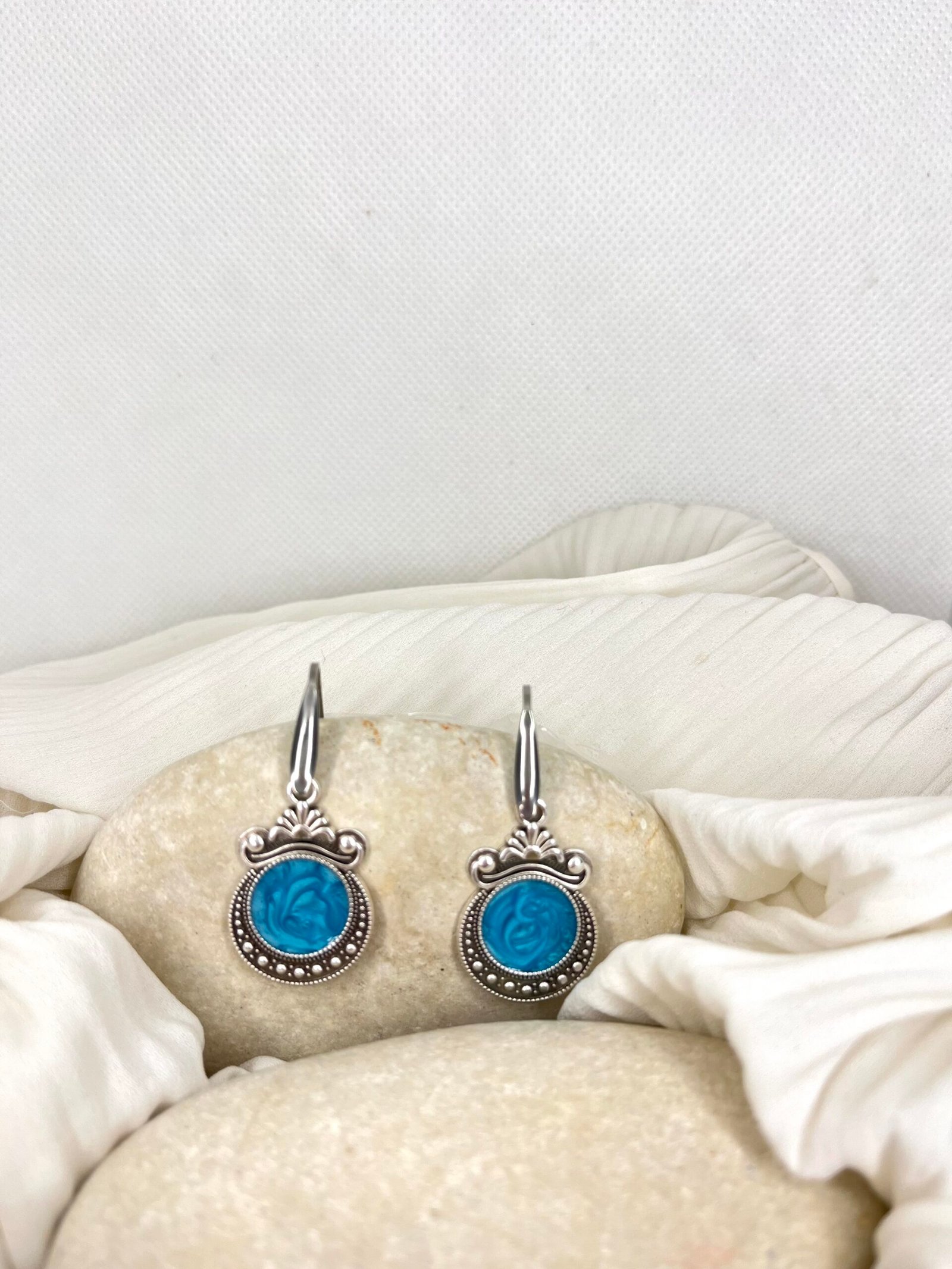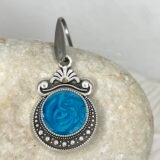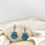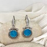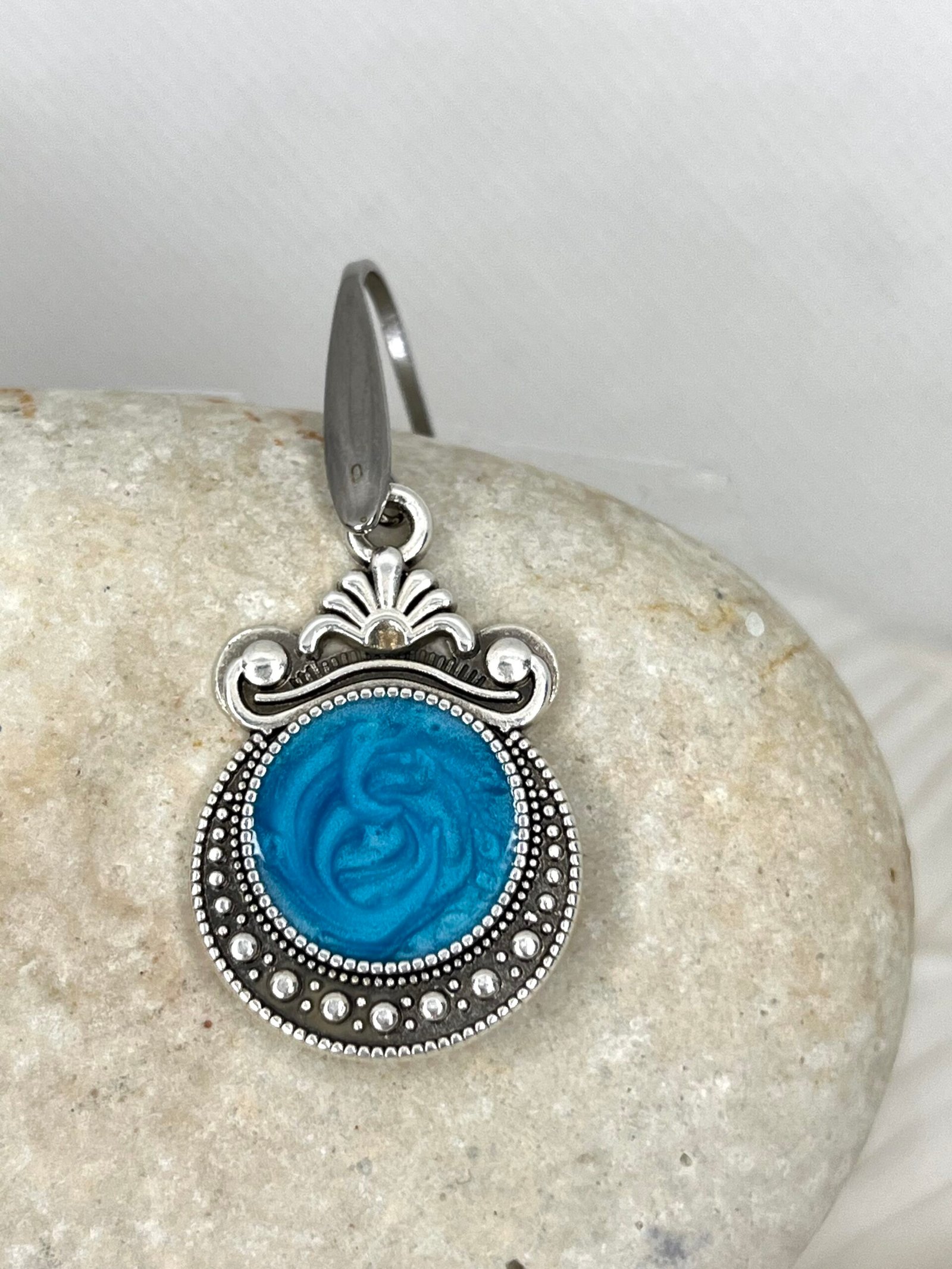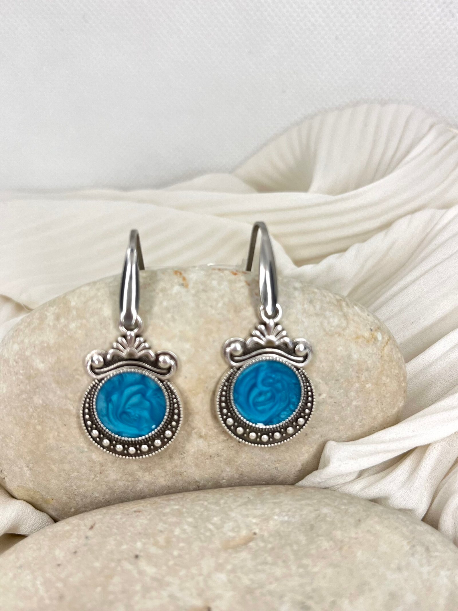Χειροποίητο κρεμαστό επάργυρο ή επίχρυσο σκουλαρίκι με χρωματιστή λεπτομέρεια από σμάλτο. Ο γάντζος είναι ατσάλινος.