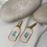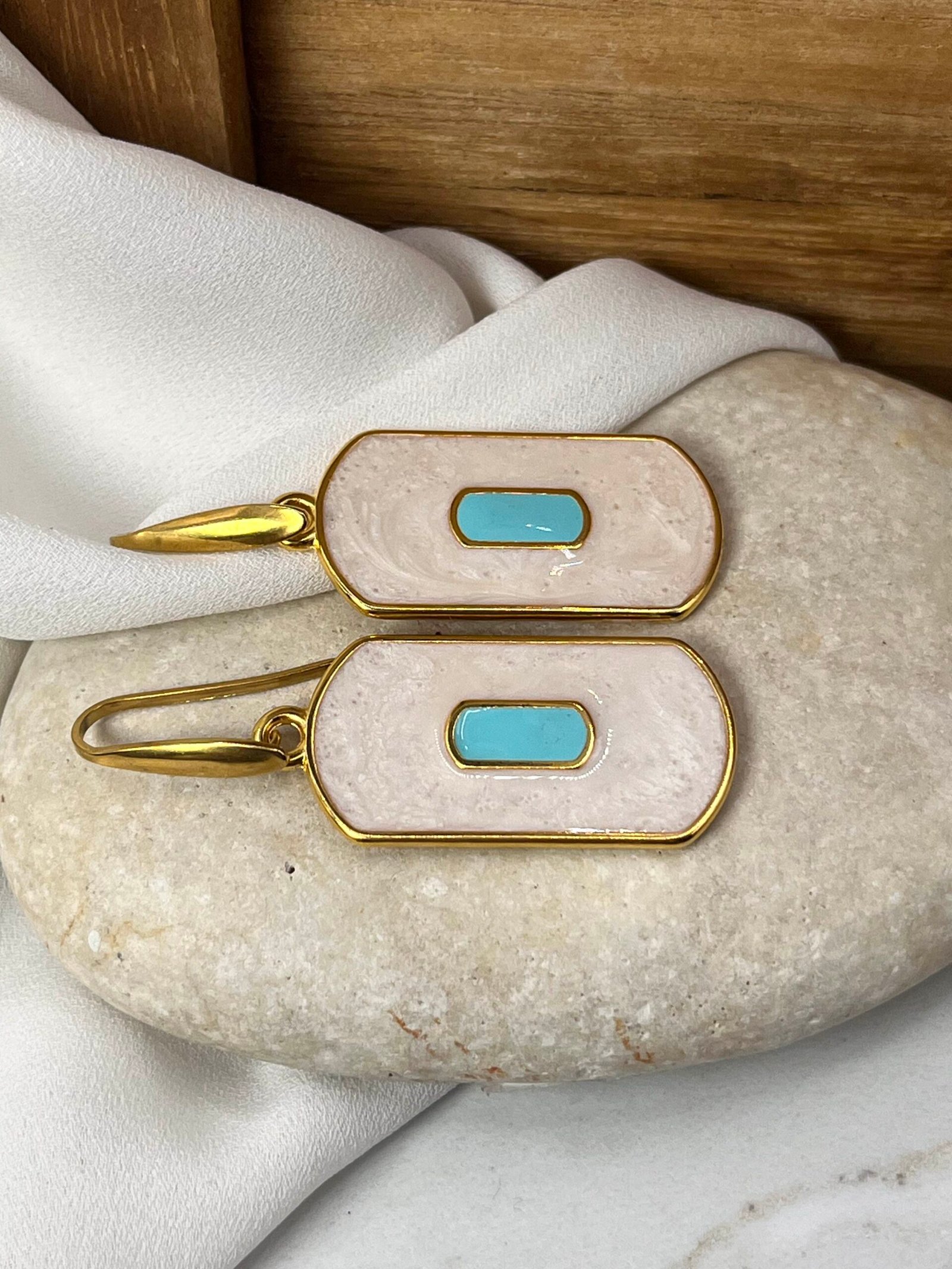 Κρεμαστό επίχρυσο σκουλαρίκι με ξεχώριστό σχέδιο και συνδιασμό χρωμάτων από σμάλτο. Ο γάντζος είναι ατσάλινος.