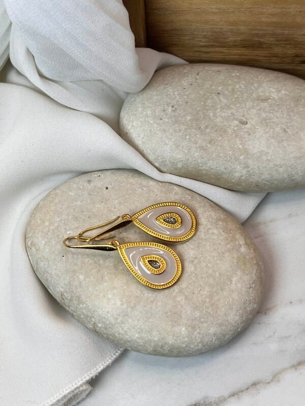 Κρεμαστό επίχρυσο σκουλαρίκι σε σχήμα σταγόνας με λεπτομέρεια στο εσωτερικό.