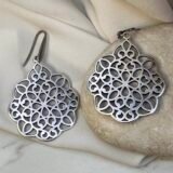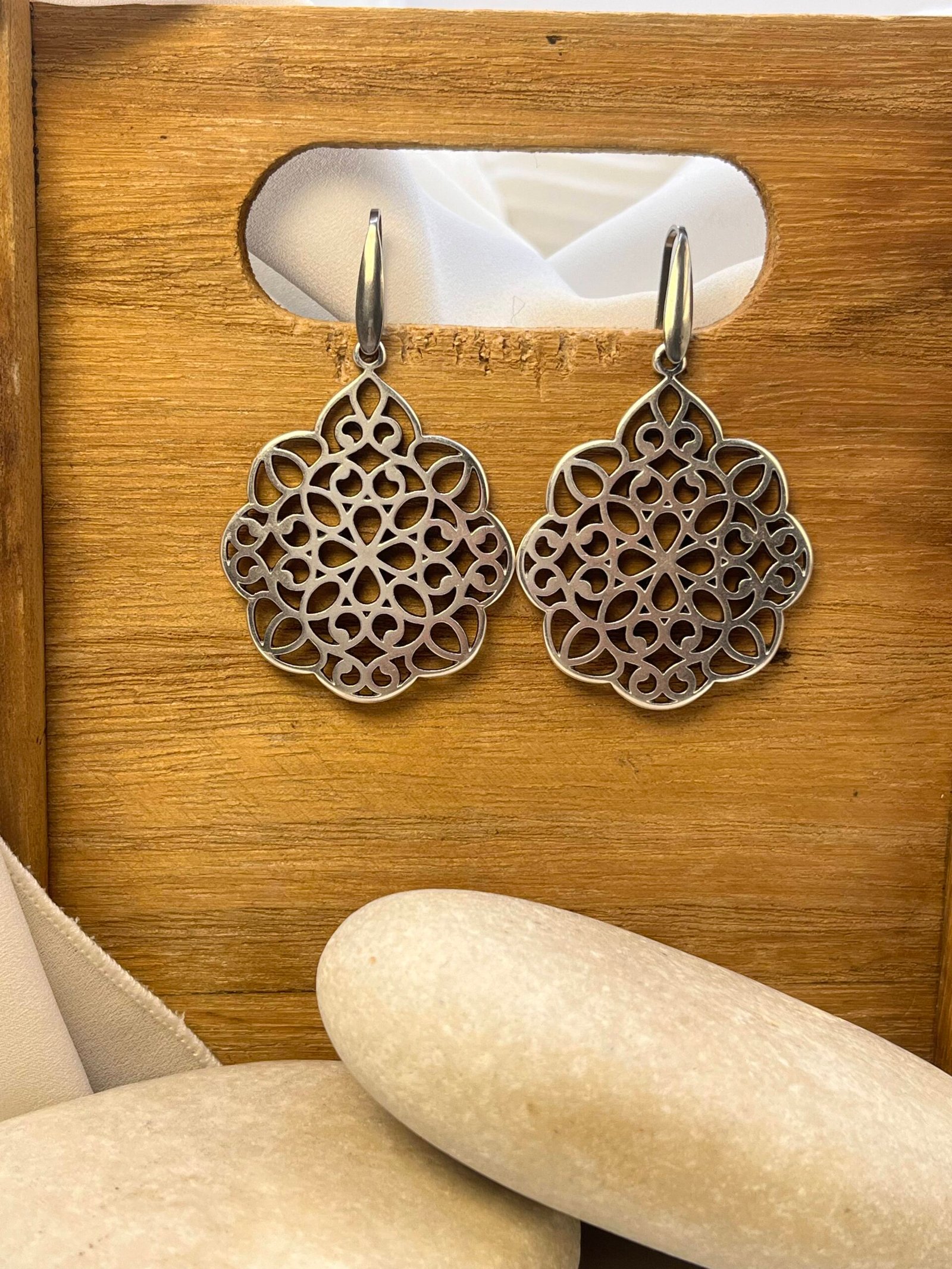 Κρεμαστό επάργυρο σκουλαρίκι σε έθνικ αντικέ στυλ. Ο γάντζος είναι ατσάλινος.