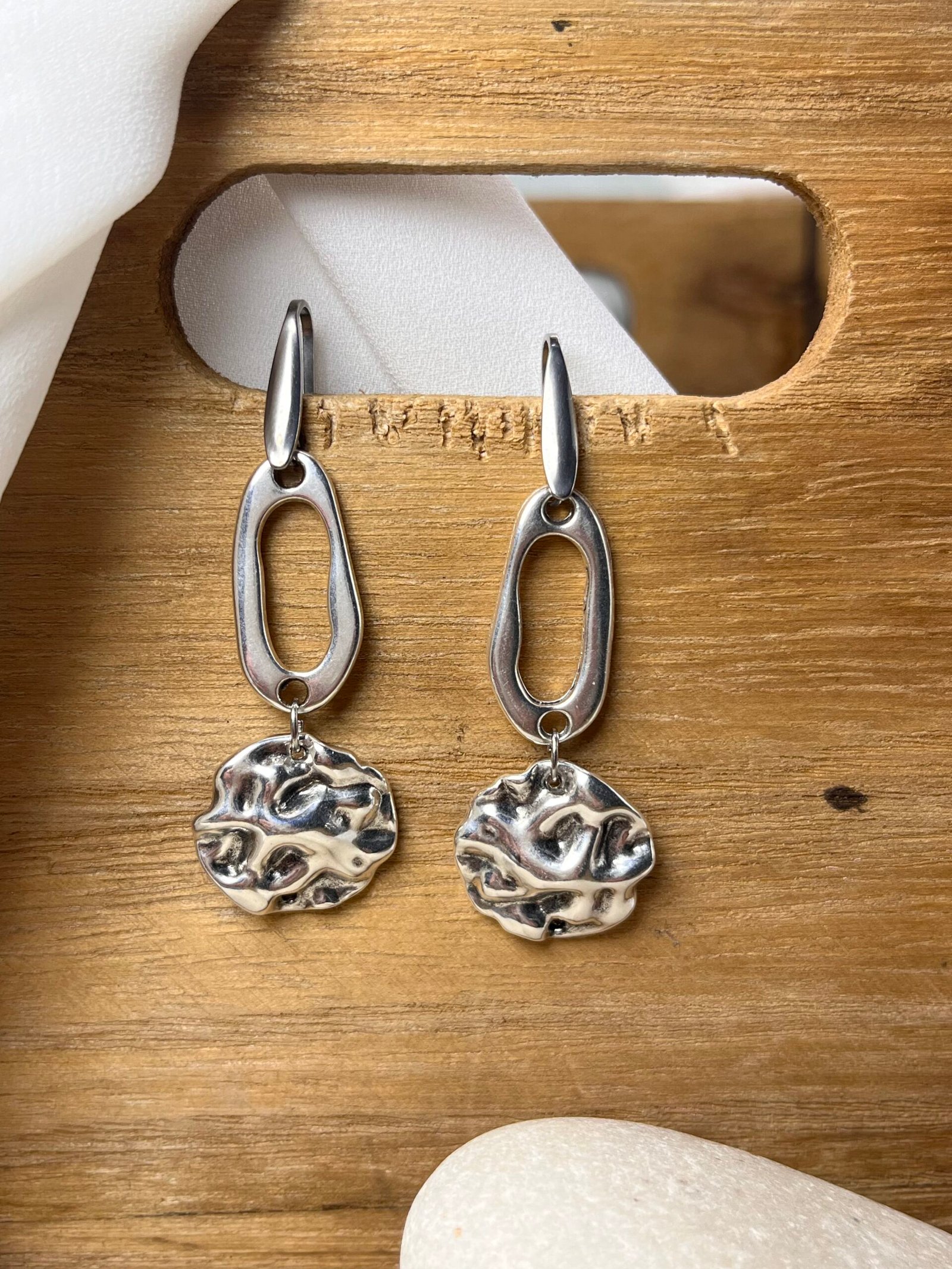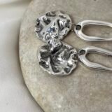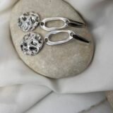 Κρεμαστό σκουλαρίκι με επάργυρα στοιχεία δύο σχεδίων. Ο γάντζος είναι ατσάλινος.