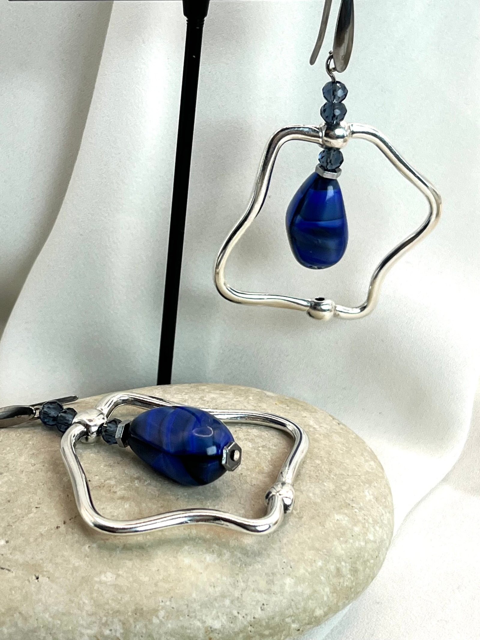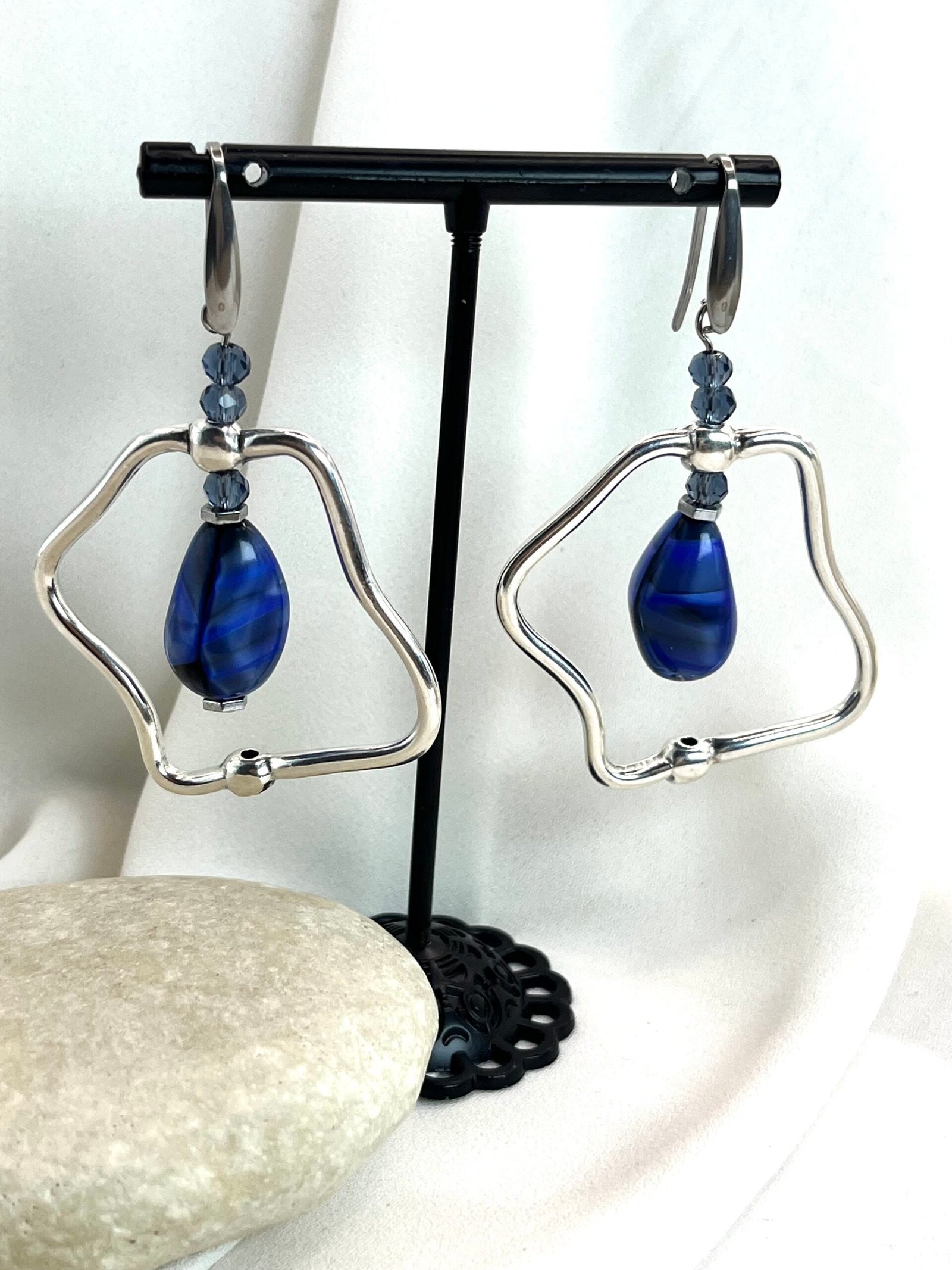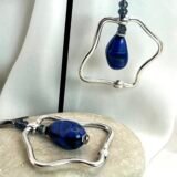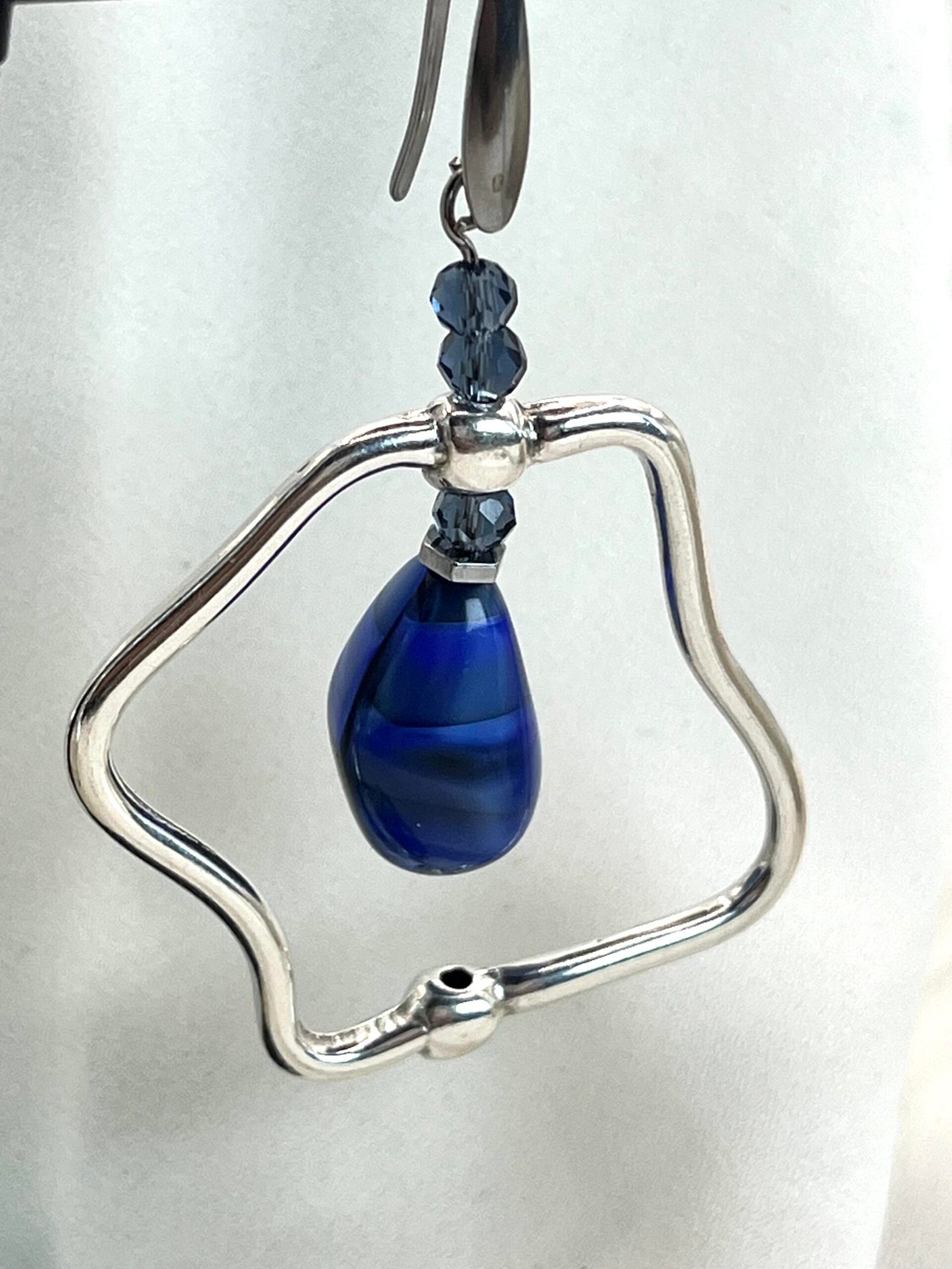 Κρεμαστό σκουλαρίκι με τετράγωνο τεθλασμένο σχήμα (3×3,5cm) με κεντρίκο στοιχείο κρύσταλλο και γάντζο από ανοξείδωτο ατσάλι.