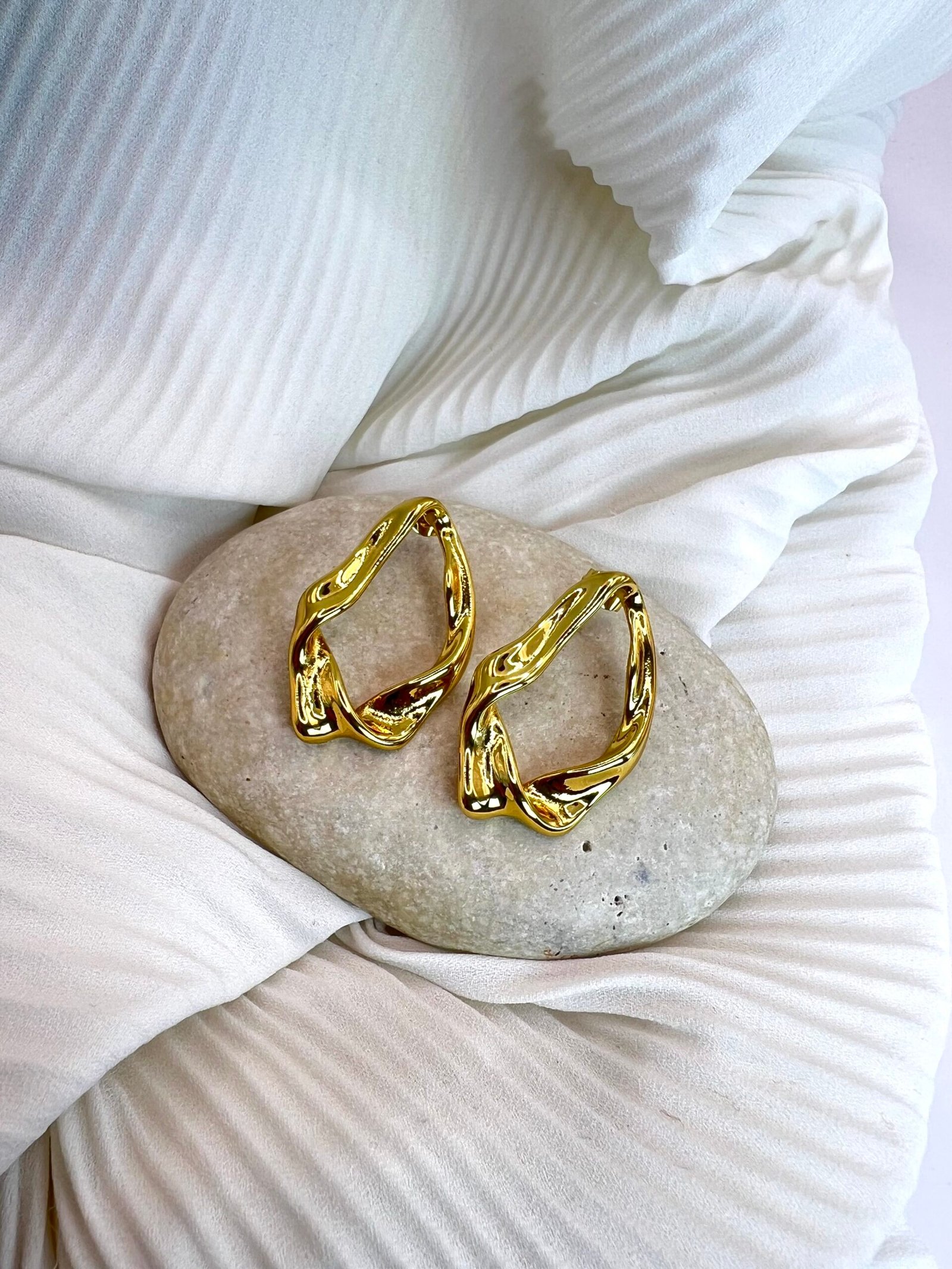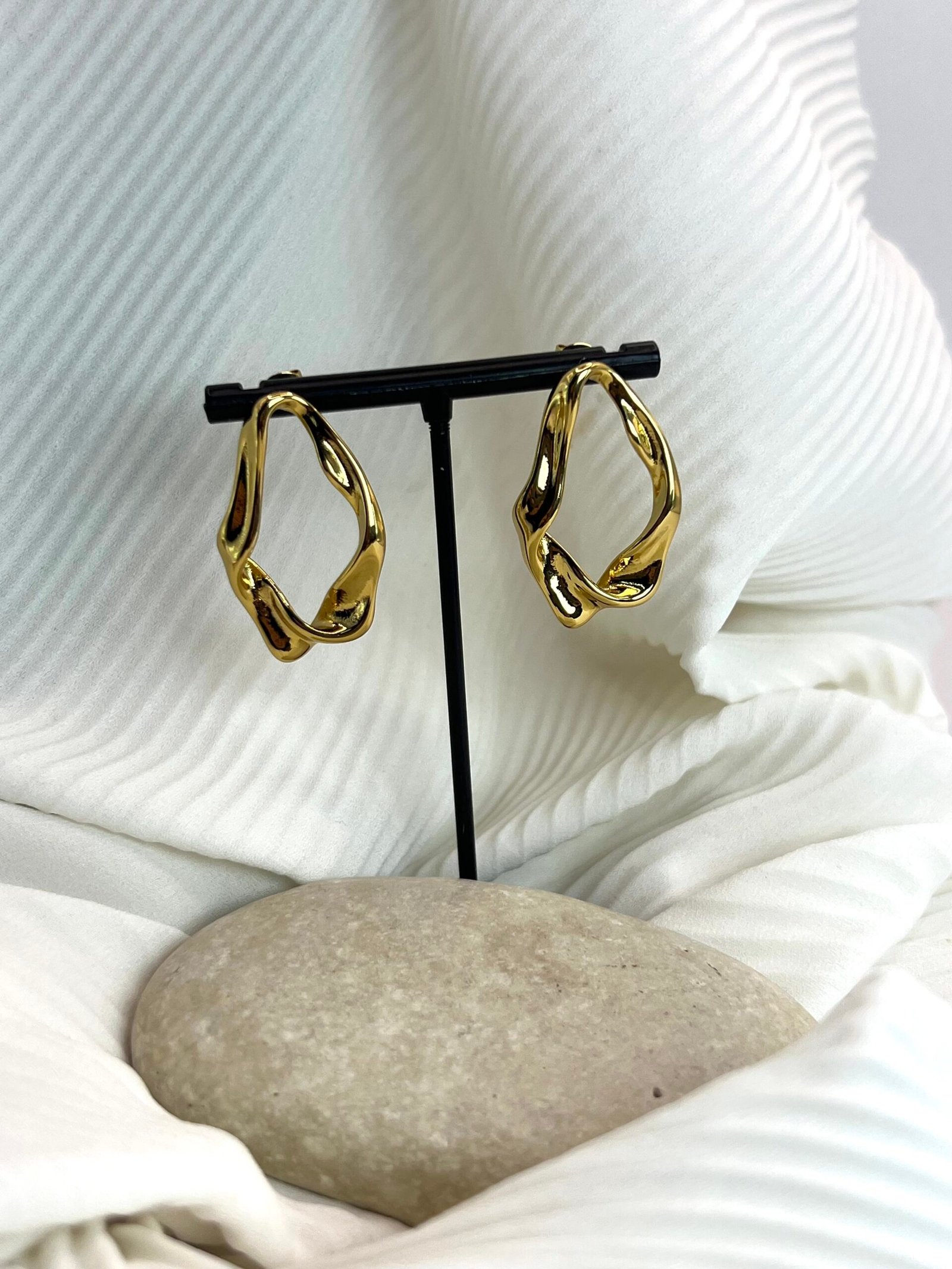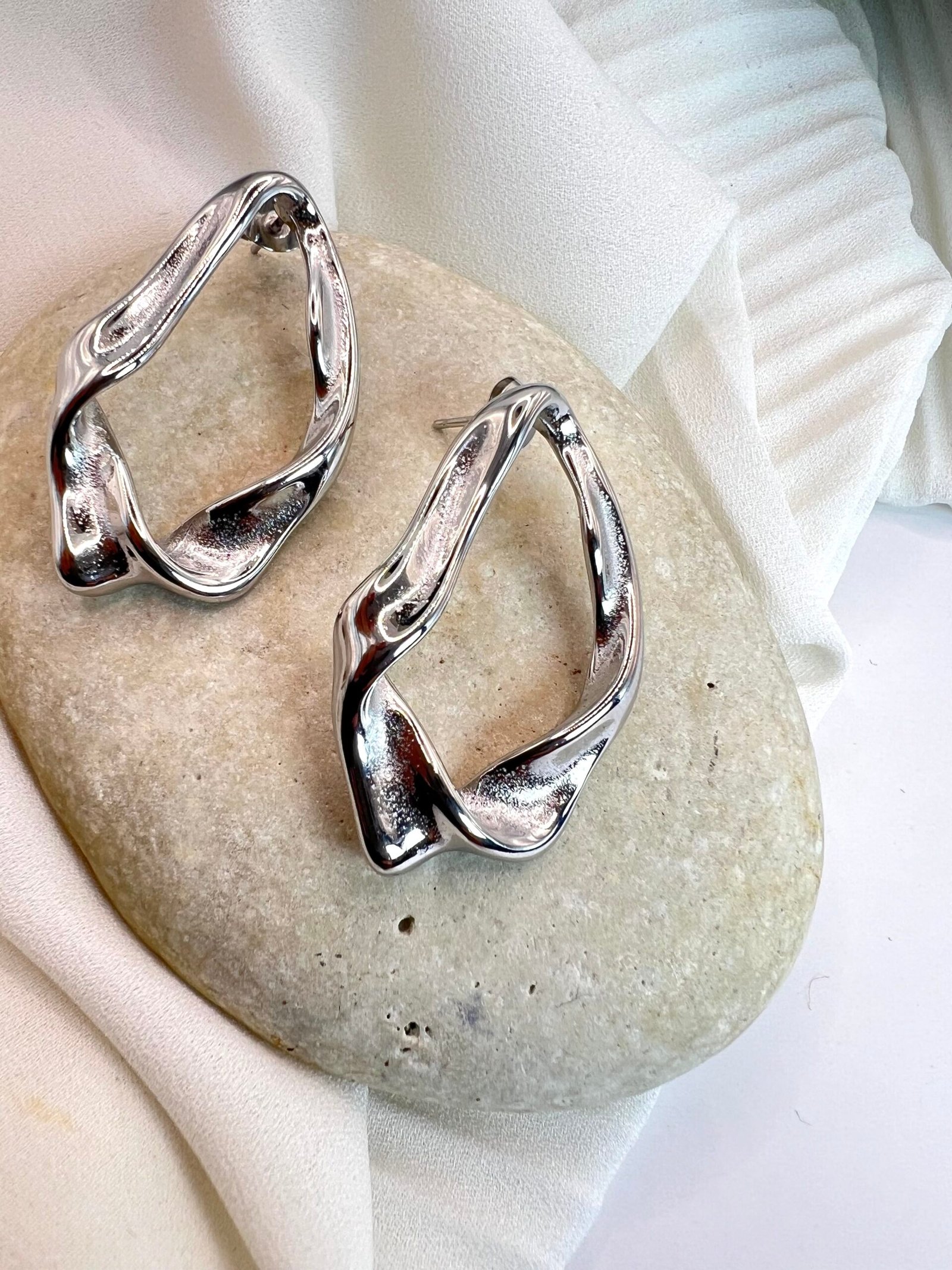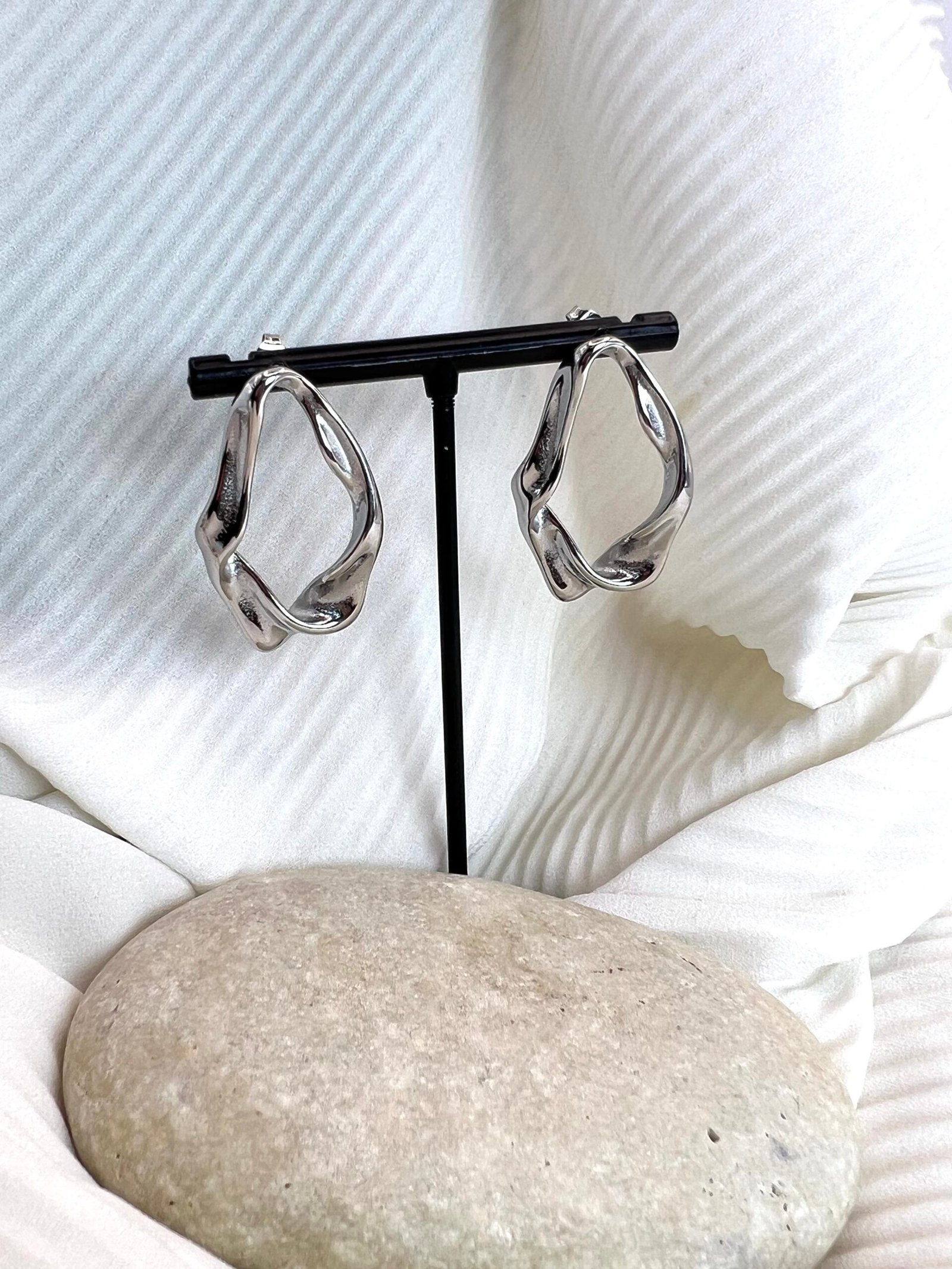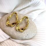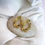 Καρφωτά σκουλαρίκια από ανοξείδωτο ατσάλι σε σχήμα δάκρυ με τσαλακωμένη όψη.