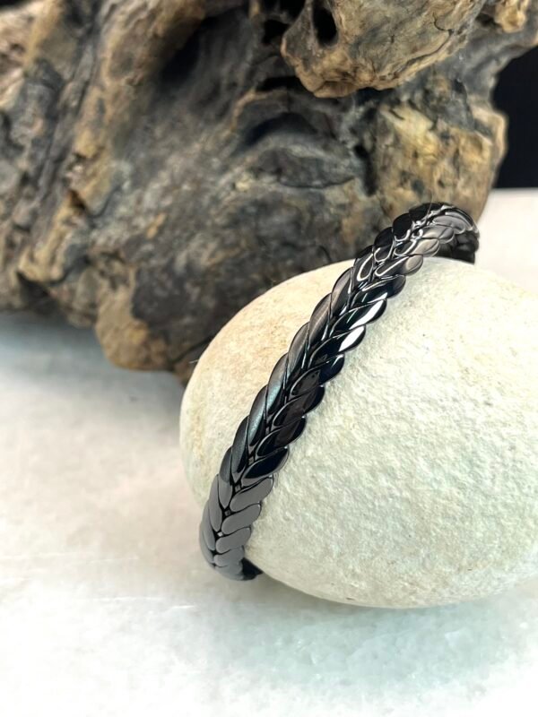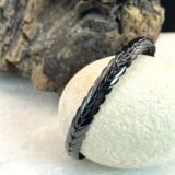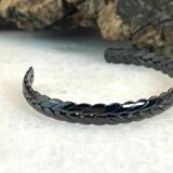 Ατσάλινη χειροπέδα από ανοξείδωτο ατσάλι, σε μαύρο ματ χρώμα με όψη πλεξίδας. Το άνοιγμά της είναι 3 cm.