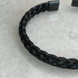 Ατσάλινη ελαστική χειροπέδα με άνοιγμα στο κάτω μέρος, σε μαύρο χρώμα με πλεχτή όψη και .