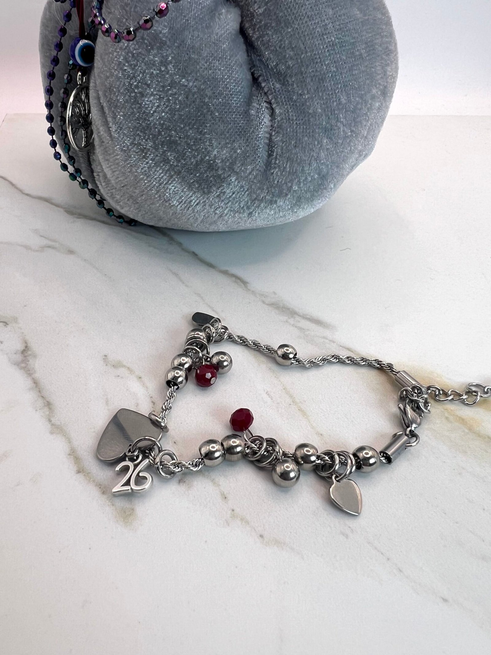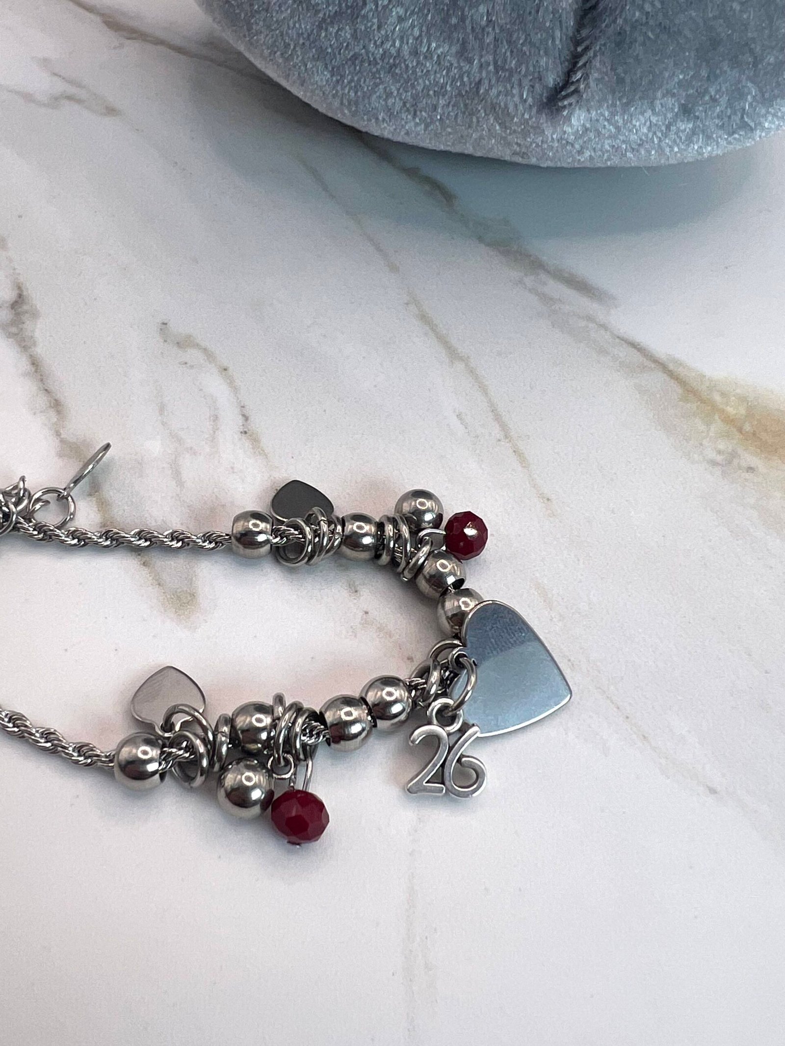 Γούρι βραχιόλι ¨2026¨με κεντρικό στοιχείο την καρδία και το ¨26¨, και κρύσταλλα κόκκινα. Το ¨26¨ μπορεί να αφερεθεί.