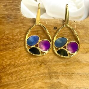 Κρεμαστό Σκουλαρίκι Tear Gold Teal