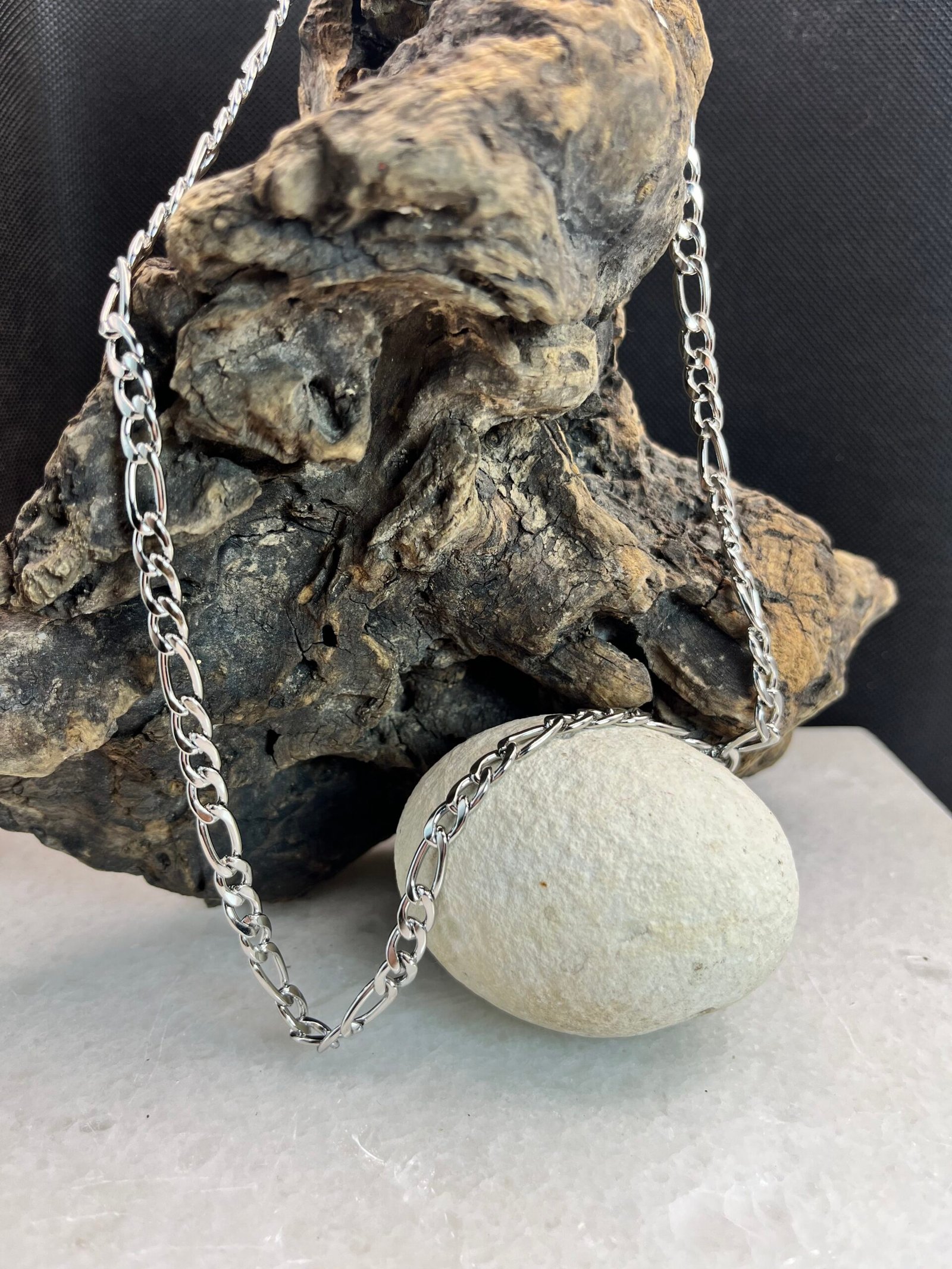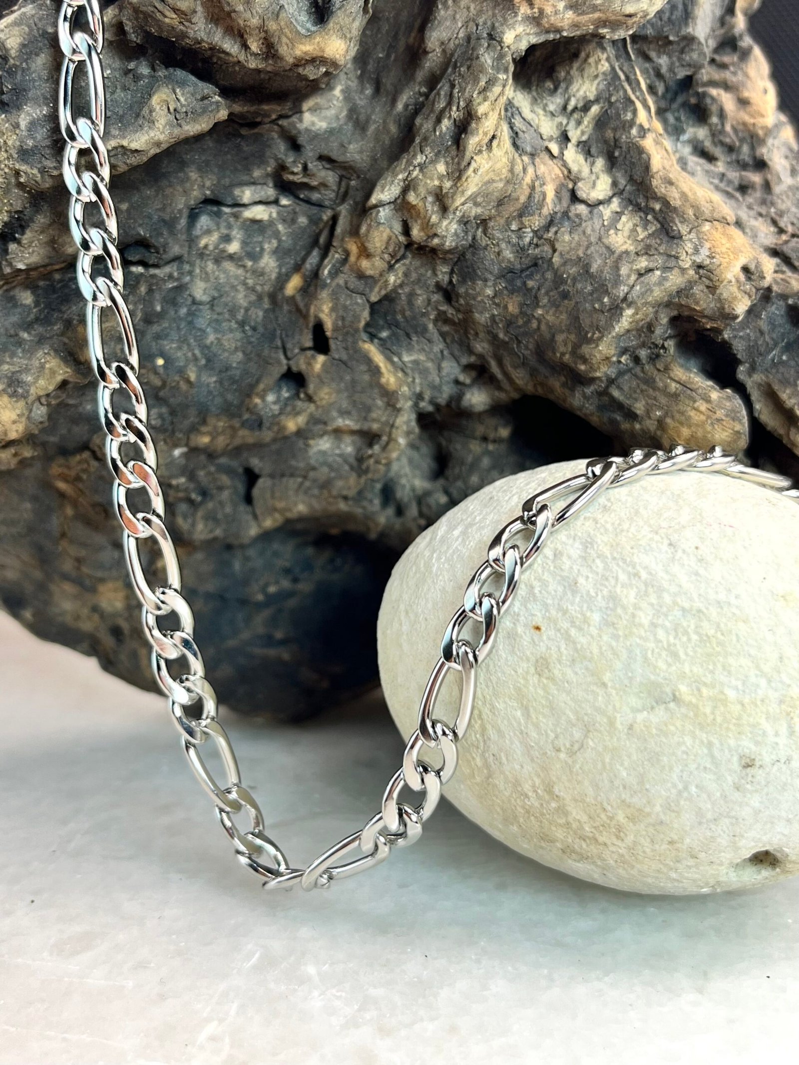 Ατσάλινη αλυσίδα λαιμού σε ασημί χρώμα, με κλασσικό σχέδιο. Διαθέτει προέκταση.