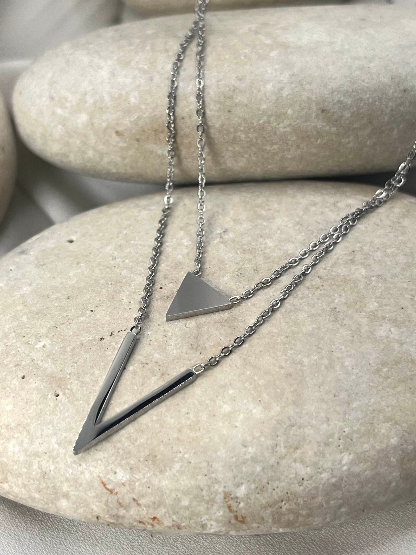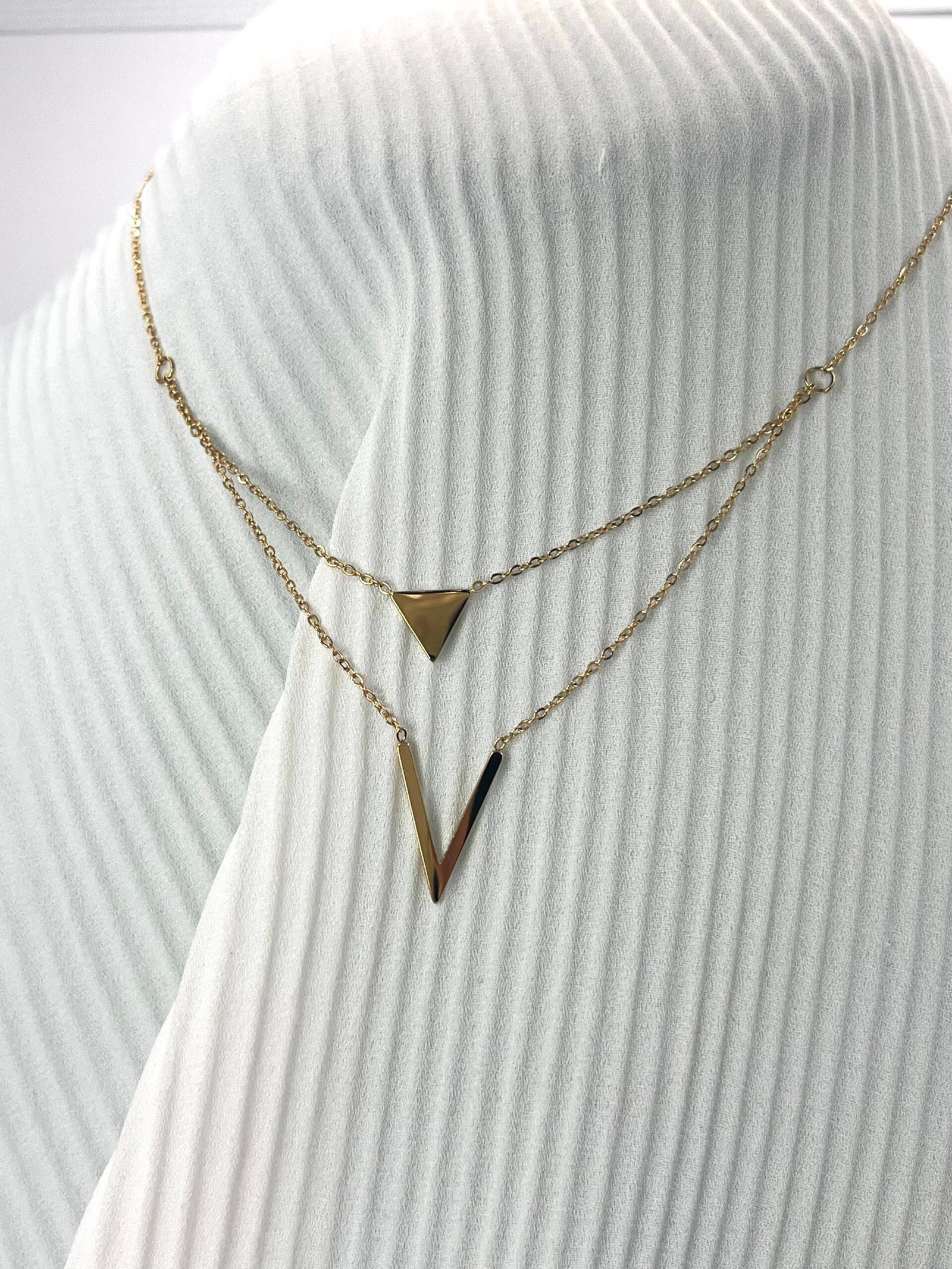 Διπλή αλυσίδα με δύο στοιχεία στο κάτω μέρος. Το ένα ανάποδο τρίγωνο και το άλλο σχήμα V.