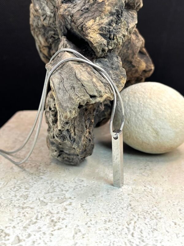 Ατσάλινο κολίε με αλυσίδα στρογγυλό ”ψαροκόκκαλο” και κεντρικό στοιχείο ατσάλινο παραλληλόγραμμο. Διαθέτει προέκταση.