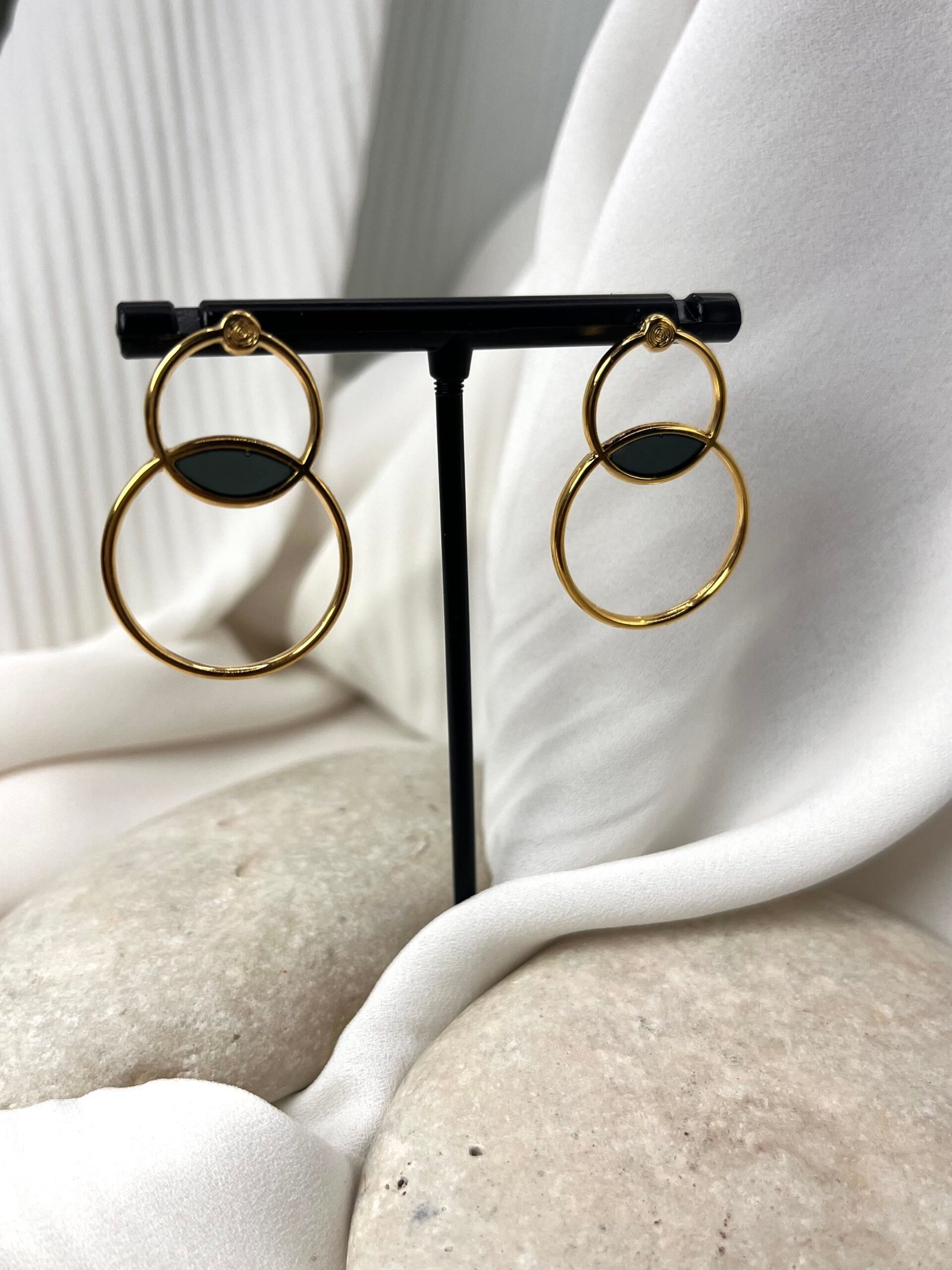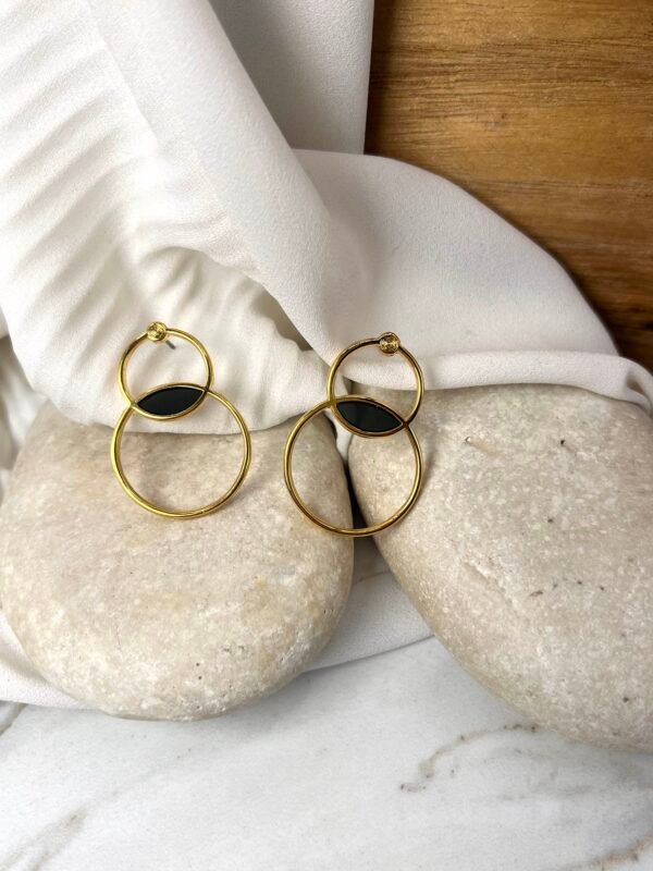 Καρφωτό επίχρυσο σκουλαρίκι με καρφί τιτανίου, με διακόσμιση βιτρό σε μαύρο χρώμα.
