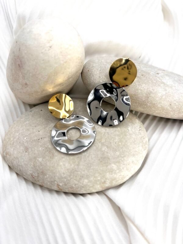 Καρφωτό σκουλαρίκι από ανοξείδωτο ατσάλι. Αποτελείται από δύο στρογγυλούς δίσκους σε χρυσό και ασημένιο χρώμα.
