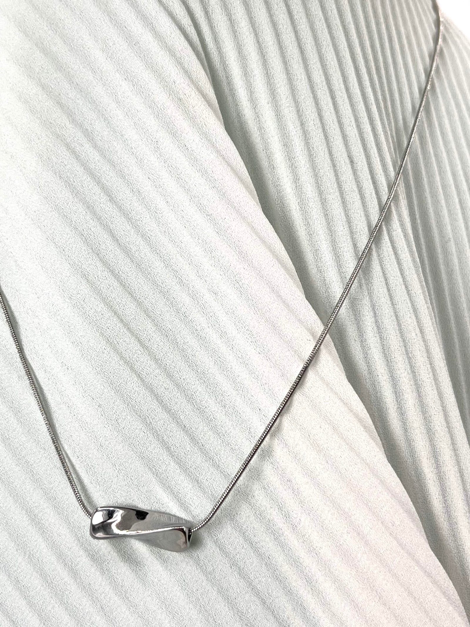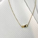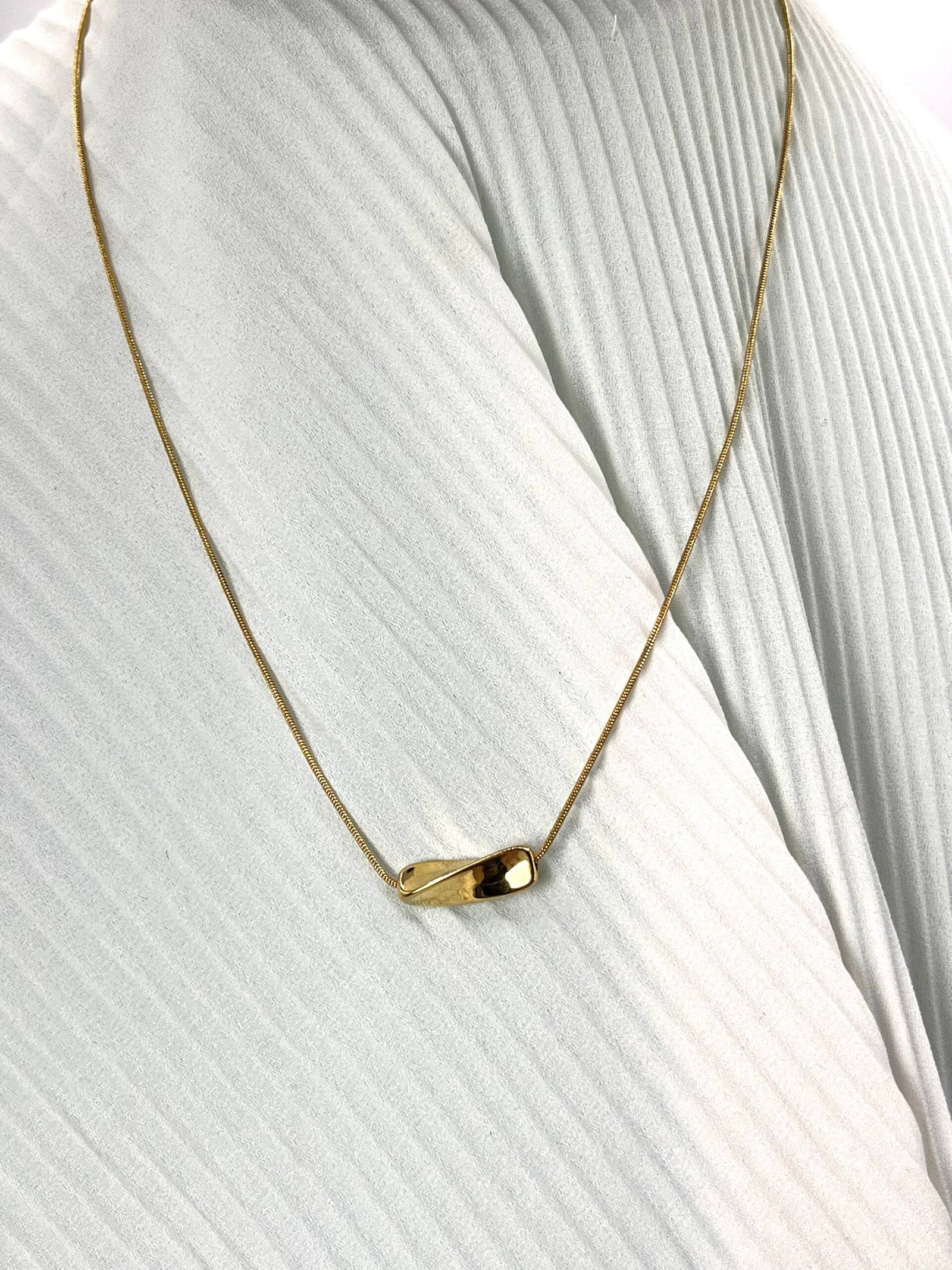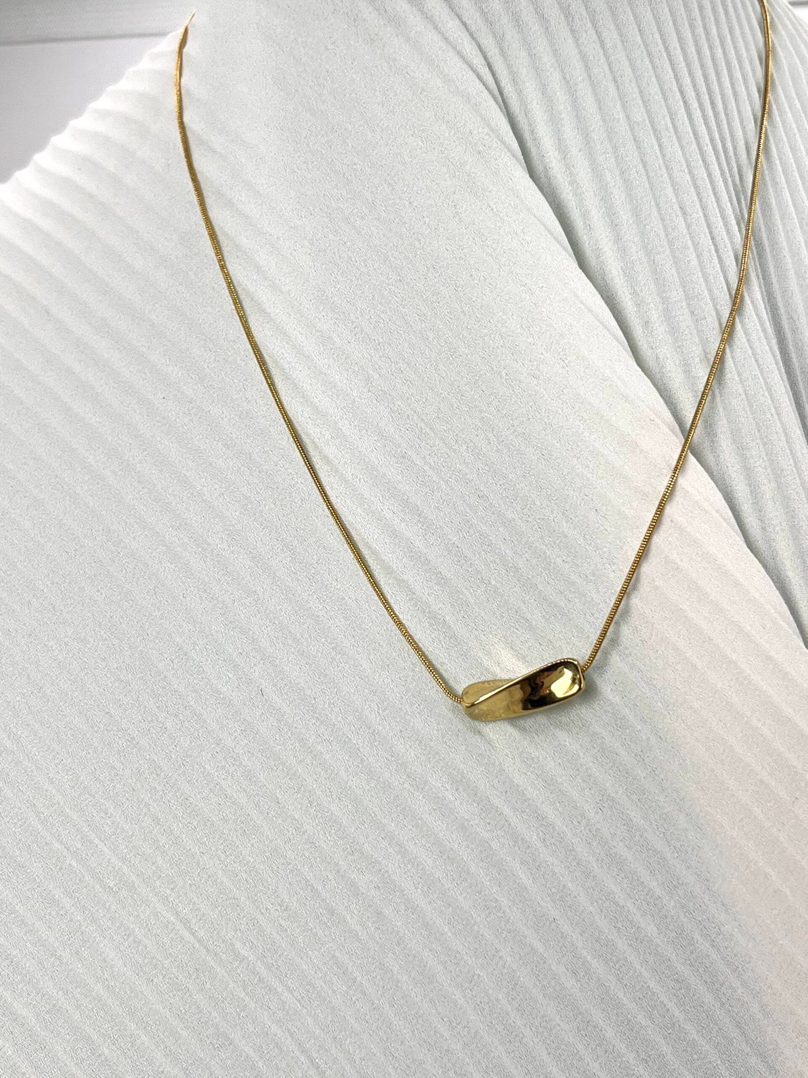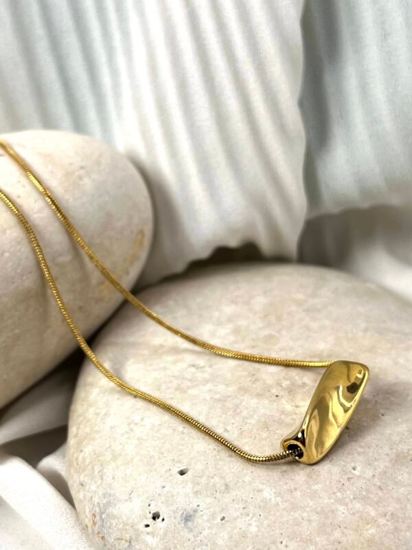 Κοντό ατσάλινο κολιέ από συμπαγή στρογγυλή αλυσίδα με ιδιαίτερο συμπαγές στοιχείο στο κάτω μέρος.