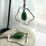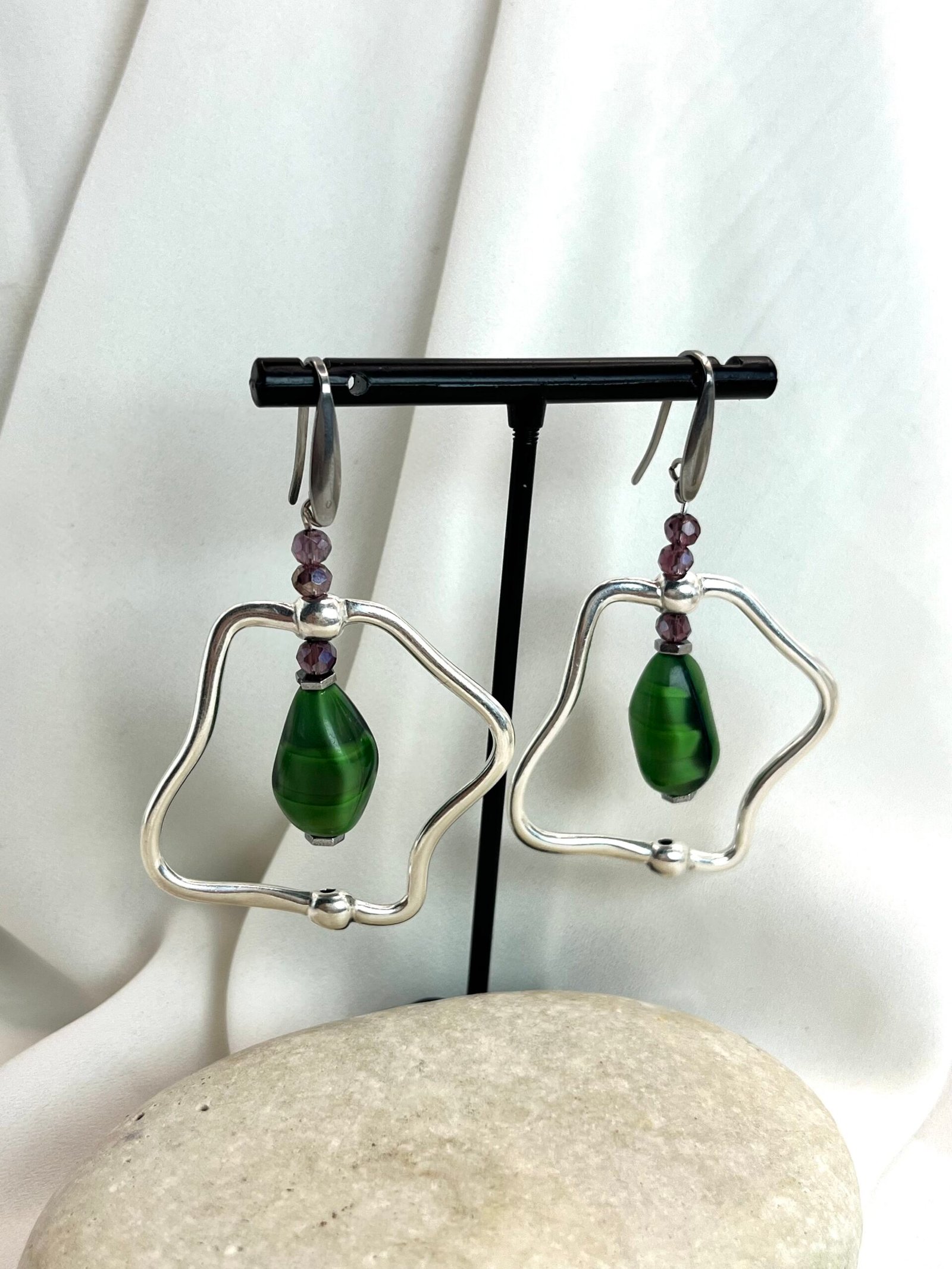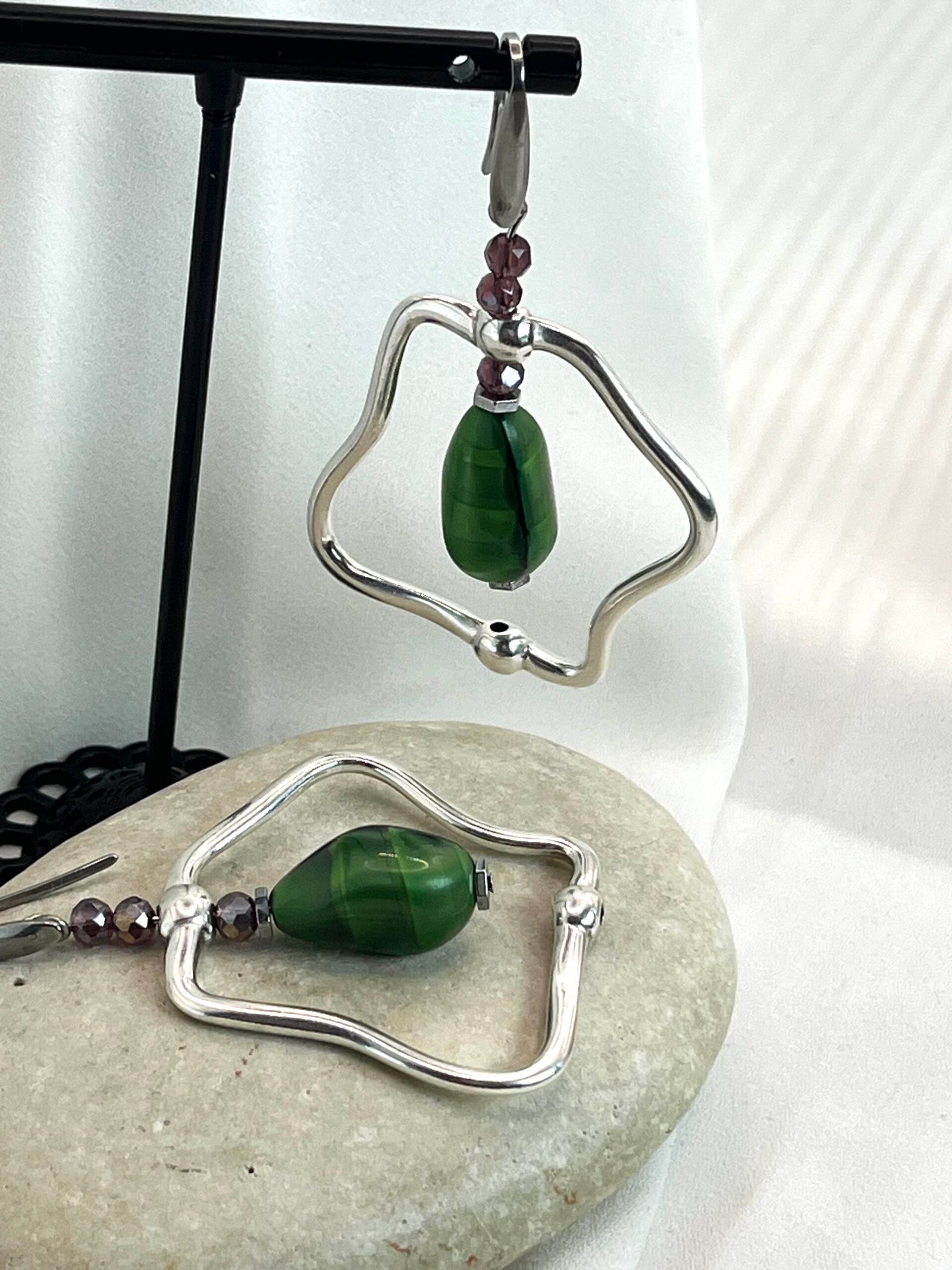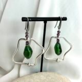 Κρεμαστό σκουλαρίκι με τετράγωνο τεθλασμένο σχήμα (3×3,5cm) με κεντρίκο στοιχείο κρύσταλλο και γάντζο από ανοξείδωτο ατσάλι.